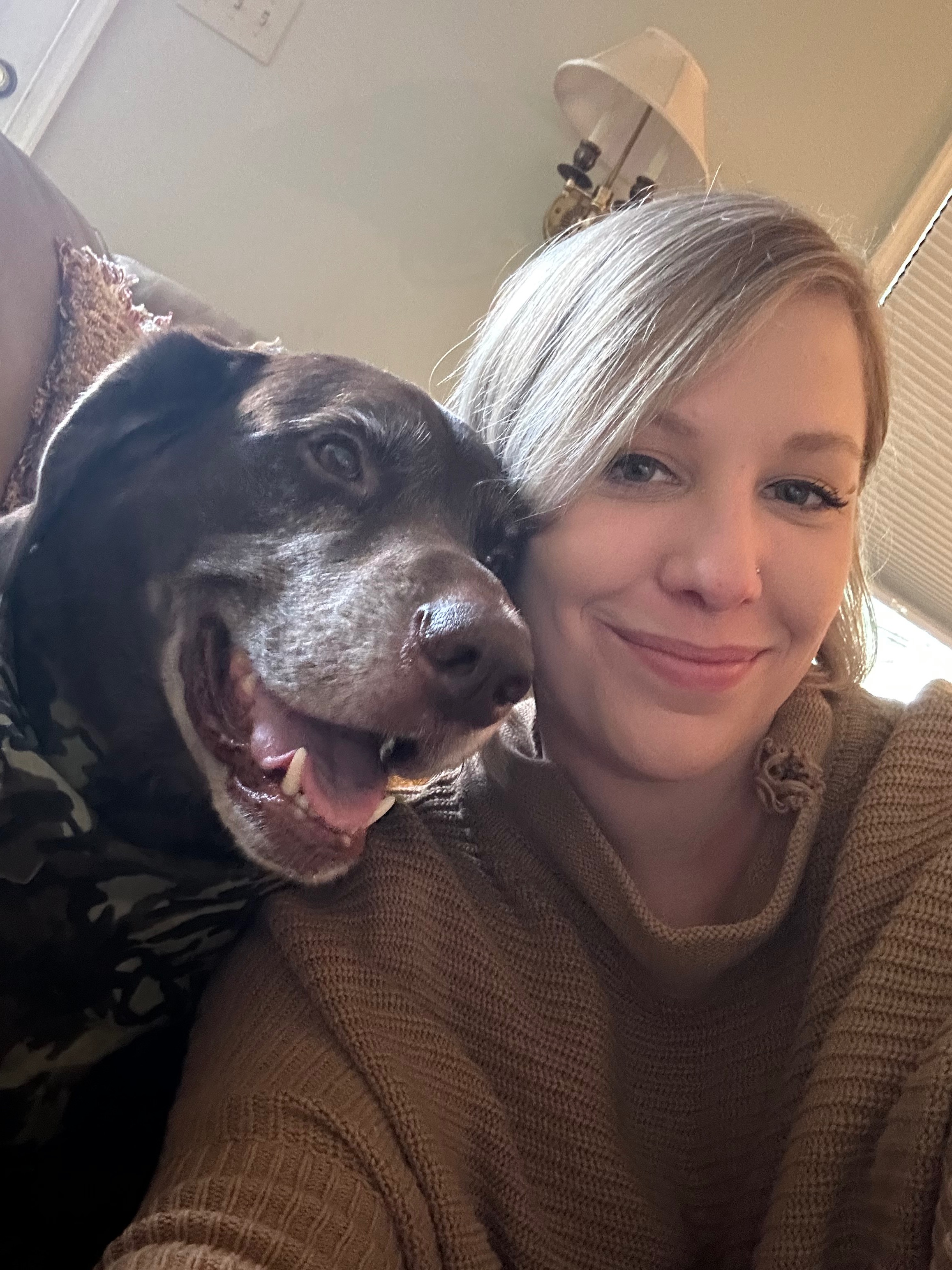A few months ago, Murphy was taken to the vet and diagnosed with type 1 diabetes (rare for labs, but who knows what he’s mixed with). I worked hard with support to keep his blood sugar levels managed, but they continued to spike up to 800s at times. Our vet referred us to a specialist, because at this point he was down to 59 lbs and miserable (this is my 75-80 lb baby!)