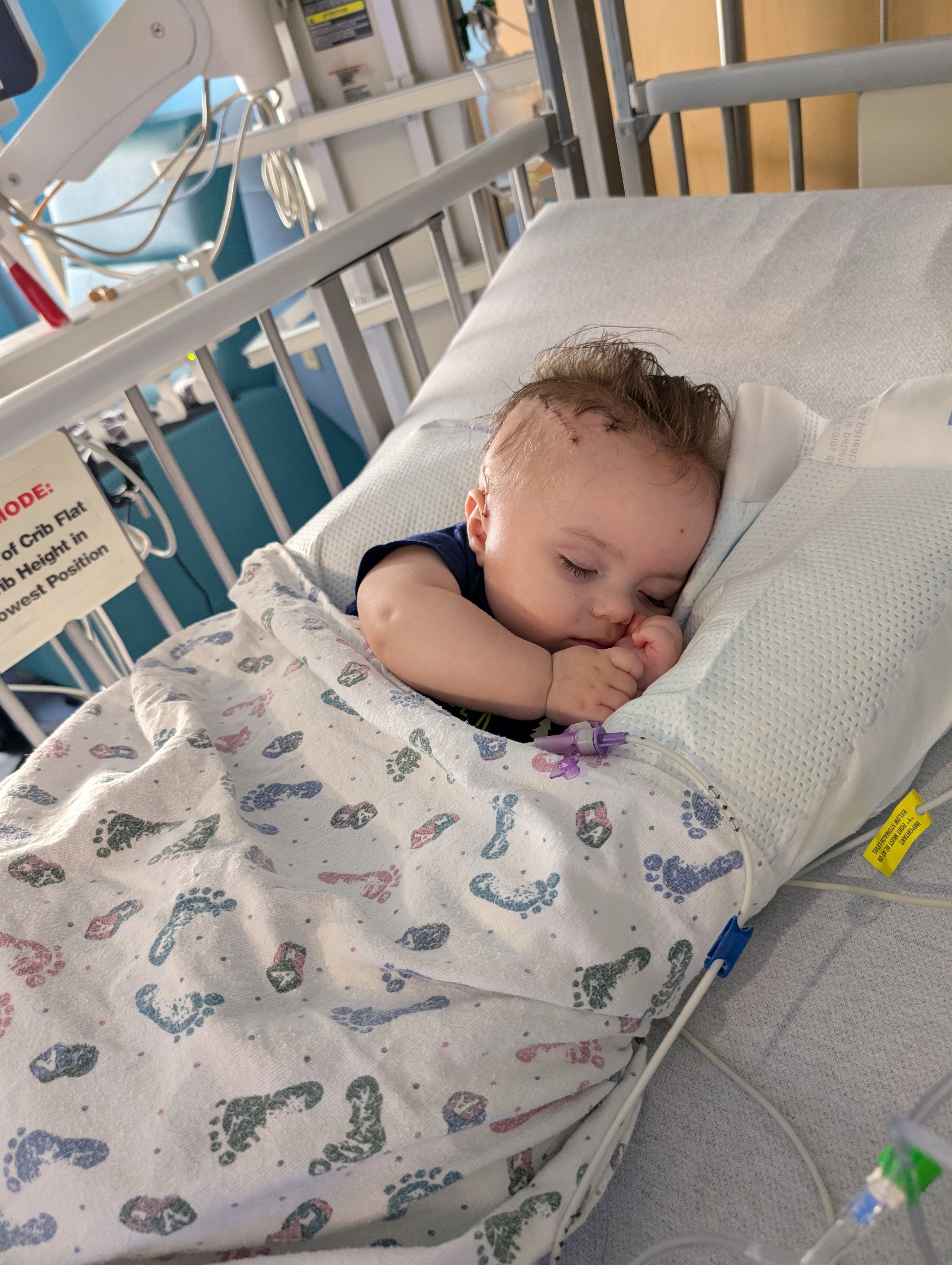 Noah's surgery went smoothly from a neurology standpoint but his heart function decreased significantly. He stayed intubated for a couple of days to give his heart a chance to rest some. He's on a bunch of new meds. His recovery has been intense. He wasn't tolerating feeds for a week so he lost an entire pound while inpatient. His heart function went back up which was a blessing. He's had issues with discomfort and getting his gut health back in order and finally made it to the 1% of kids who can poop on their own after surgery. He's been going through a flat period where his expressions are pretty blank and sleeping 22 hours a day. At week 3 of recovery he's faced some serious spasticity and so right now our focus is to keep him comfortable. He's 8 months old now and this surgery will set him back developmentally but he is for sure a fighter and we know that he will continue to shock us all. That being said we had to dip into our finances to find him a more comfortable car seat for the long drives too and from his appointments. My husband is still working so hard and we are saving every penny we can. Thank you to everyone that has donated so far! You have no idea what it means to us please keep praying for a speedy recovery. We thank God everyday for keeping our sweet boy safe and we truly feel blessed
