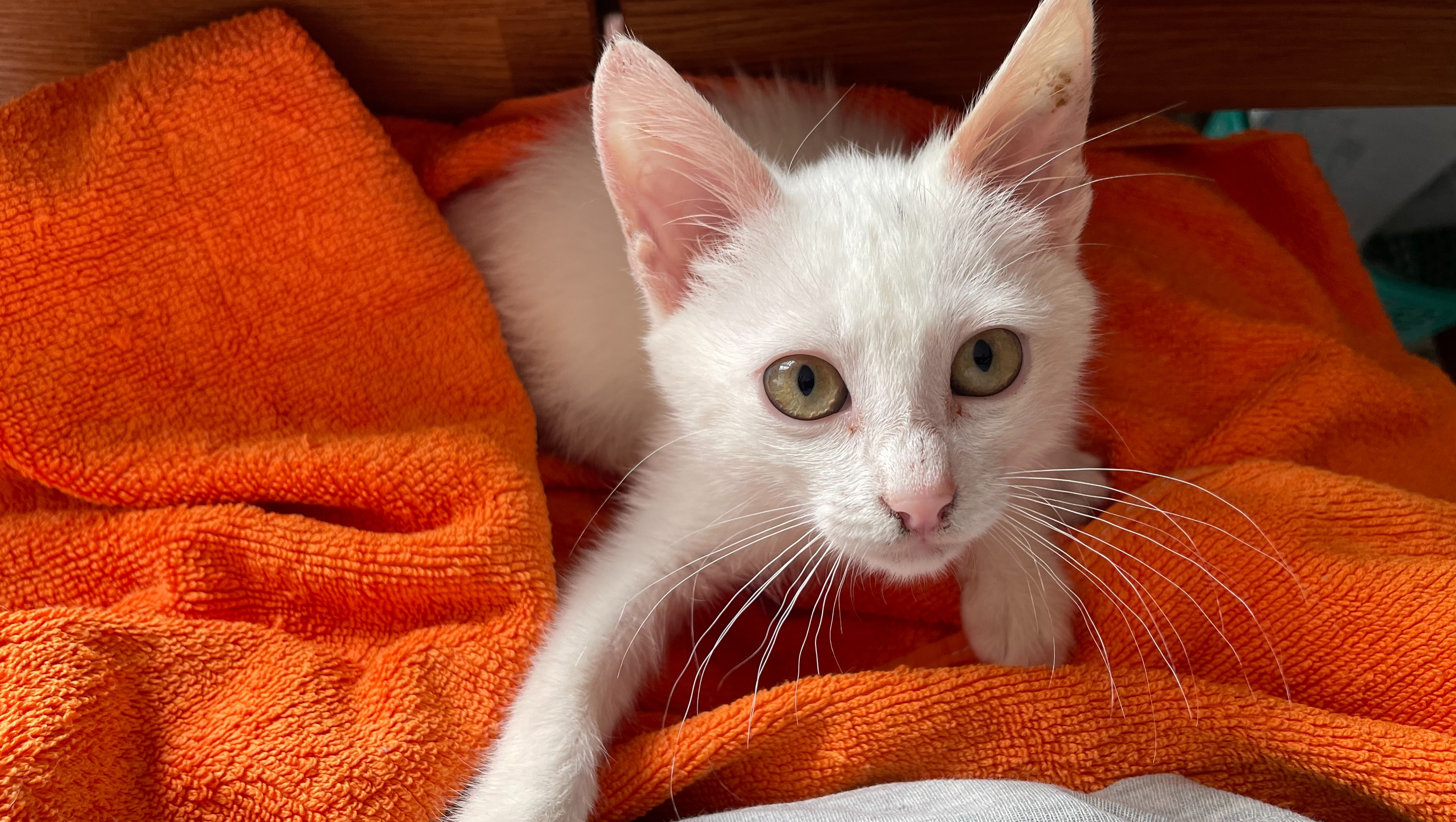 Matilde is the sweetest soul you could ever meet. We have taken her in with severe eye infections and needs daily wipes, drops, and medication. Despite all this, she is incredibly patient and affectionate, always trusting her carer to do what’s needed. Sadly, one of her eyes cannot be saved and will need to be removed — but even with all she’s endured, she never stops giving love.