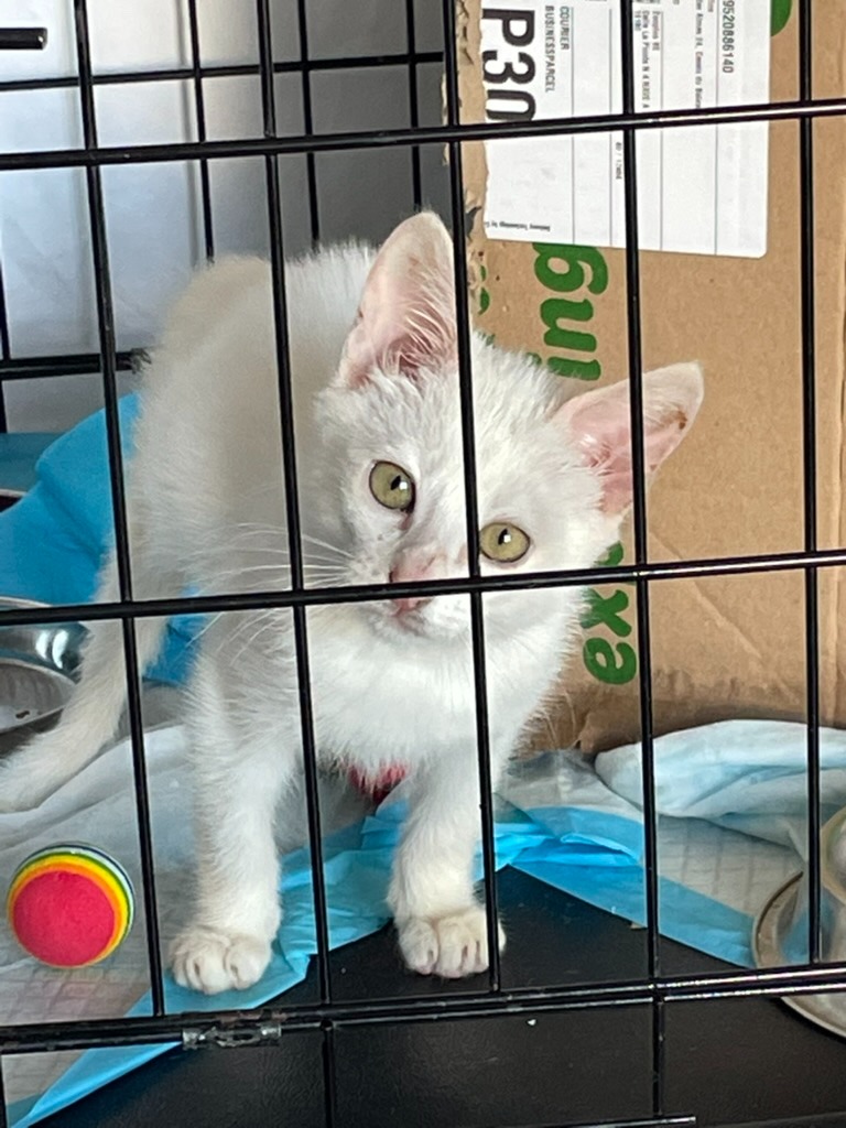 Miffy was living with her mother in a backyard, with paralyzed back legs! The vet thought euthanasia might be the only option, but Miffy showed us she wasn’t ready to give up. Since we took her in, this little white fluffball has moved her back legs a little. We have big hopes for her quality of life as she can manage her bladder and bowel on her own. Most importantly, she LOVES to play, explore, and show us her fighting spirit.