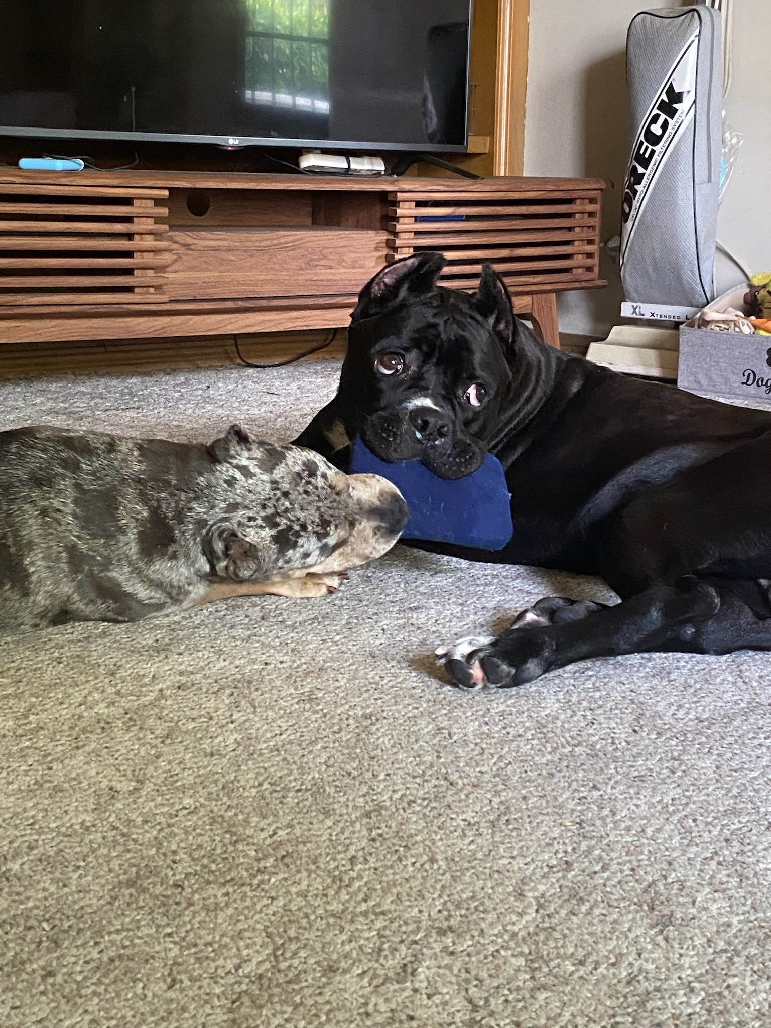 He knows he loves his sisters Ozzy and Chewy, and they love him too.