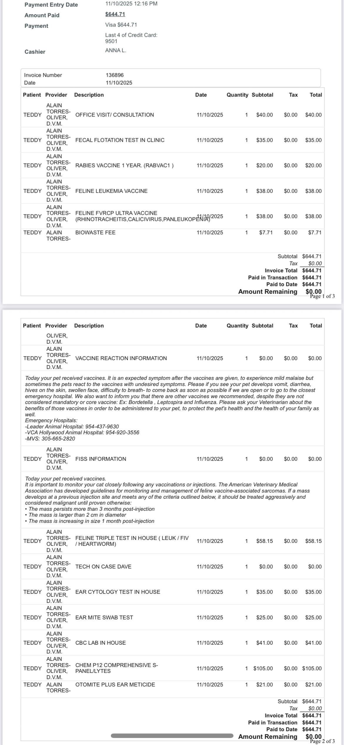 ✨ Vet care: exam, vaccines, neuter, and flea/tick prevention
