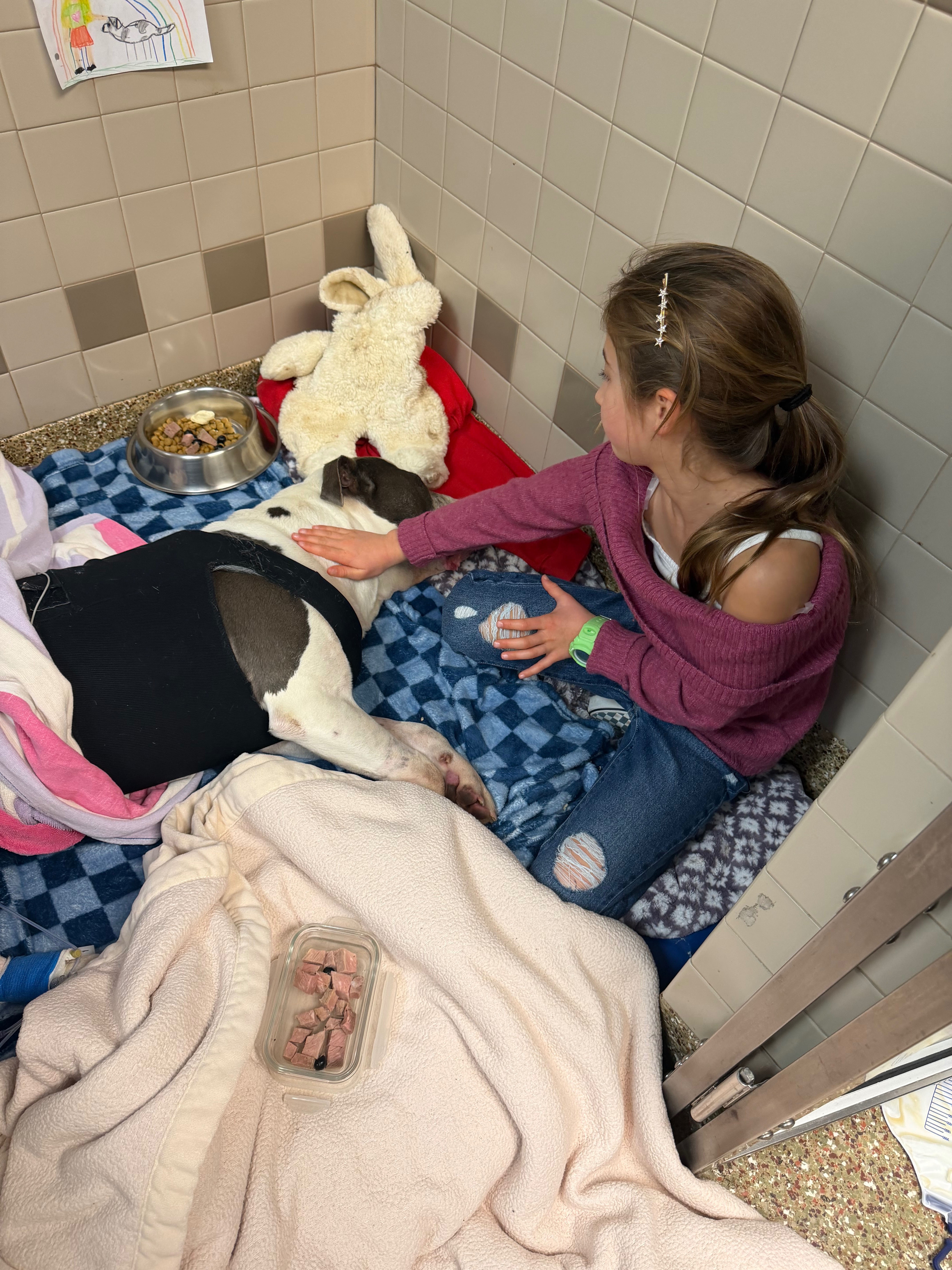Thor is currently fighting for his life in the ICU at Loomis Basin Veterinary Clinic. He suffered a fractured skull and internal bleeding, along with multiple wounds that required incisions above his eye, on his side, and on his tail. Right now, our biggest concern is the internal bleeding. His blood count has been steadily dropping — about 5% each day. It needs to stay between 40–50%, but yesterday it fell to 25%. But, he is stable and resting. We cannot focus on any of the other injuries until the internal bleeding gets under control. A blood transfusion comes with serious risks, so we are praying he can stabilize on his own so doctors can continue treating his other injuries.