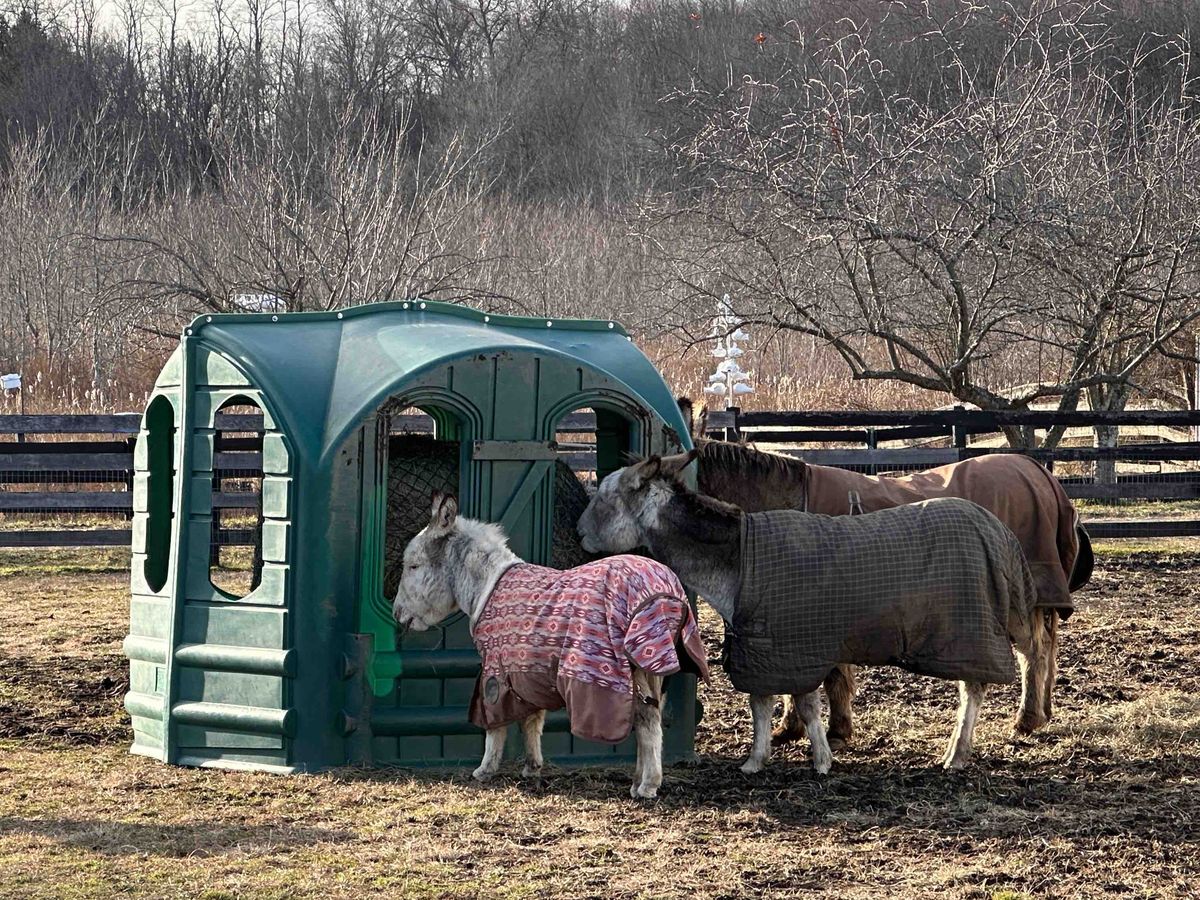 It is almost Giving Tuesday!! This year we are doing a flash fundraiser to add some hay feeders to our pastures. These are a more economical version than the metal ones in use already. These will go into the herd pastures that are currently without feeders. They will help us cut down on hay waste and save $$. The HayHut is placed over the hay and keeps it dry and in one place. The animals love to spread the valuable hay all over the place and it is wasted. We will be picking one up this week and hope to add two more next week before it gets much colder. Can you help us make this Giving Tuesday Terrific?