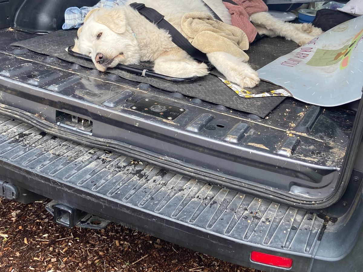 My name is Tom Dodd, and I am looking for help for the cost of Athena's recent adventure of several days of ICU care. This remarkably sweet and personable Great Pyrenees that I rescued a year and a half ago from euthanasia, suddenly lost the ability to walk last Friday night. Until Friday, she happily patrolled this ranch of retired horses, taking a long walk to the creek with me every day, and traveling pretty much anywhere I went in the back of my car. She was a happy dog, well loved. The local vet in Pescadero sent out a couple of strong women who helped me get her on a stretcher and into their van. Athena weighs at least 140 lbs. She and I spent two days in that clinic, but when the problems got too difficult for them to diagnose, they referred me to the Pacific and Santa Cruz Veterinary Hospital in Santa Cruz. Both places gave her great and compassionate care.