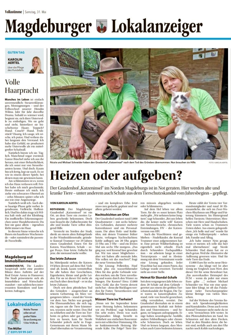 Der Gnadenhof-Katzeninsel in magdeburg braucht für den Winter neue Heizung für die Tiere