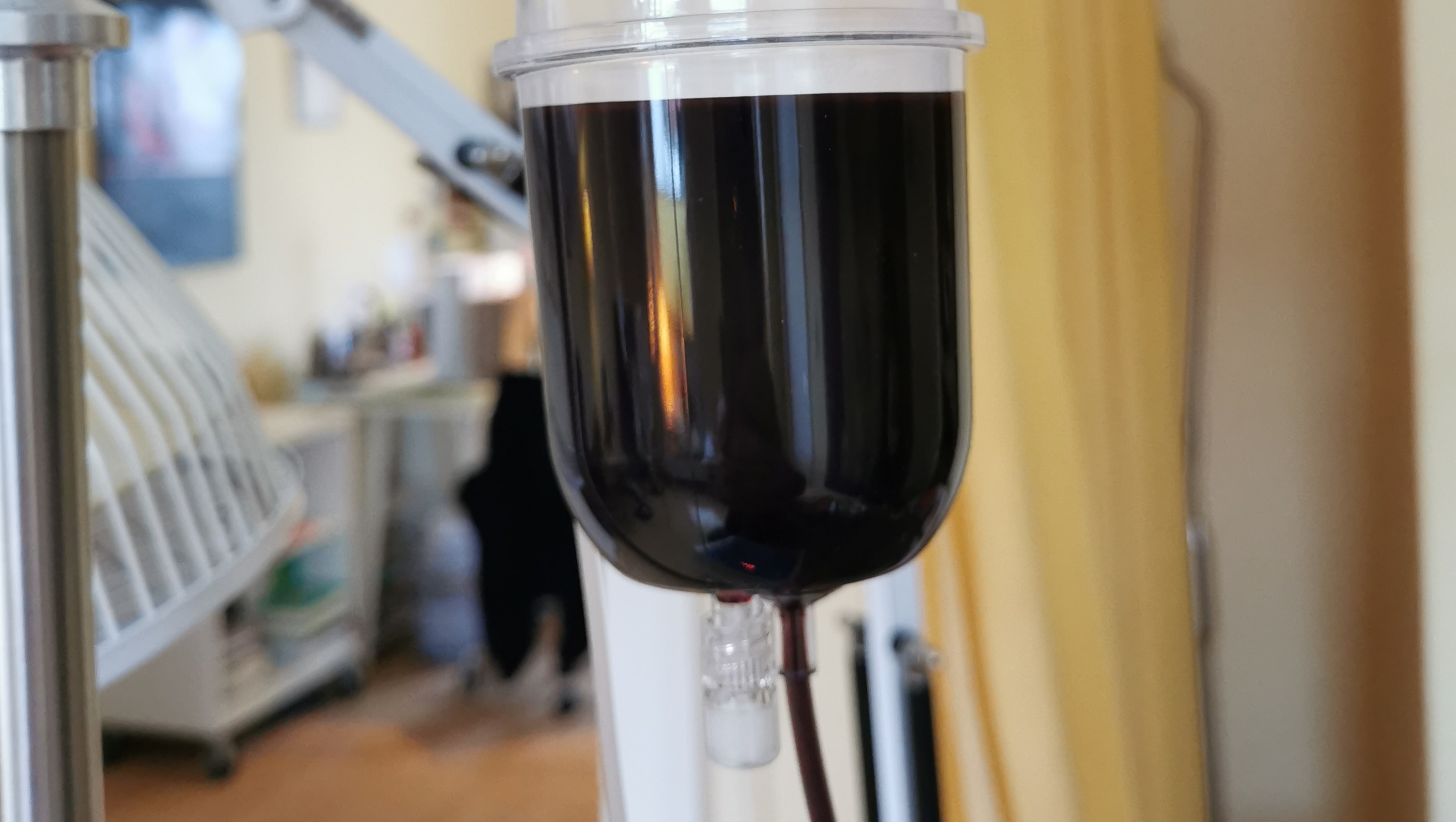 Fast schwarzes Blut beim Aderlass