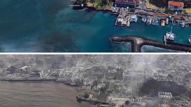Lahaina before/after. Photo: Leslie Prètot