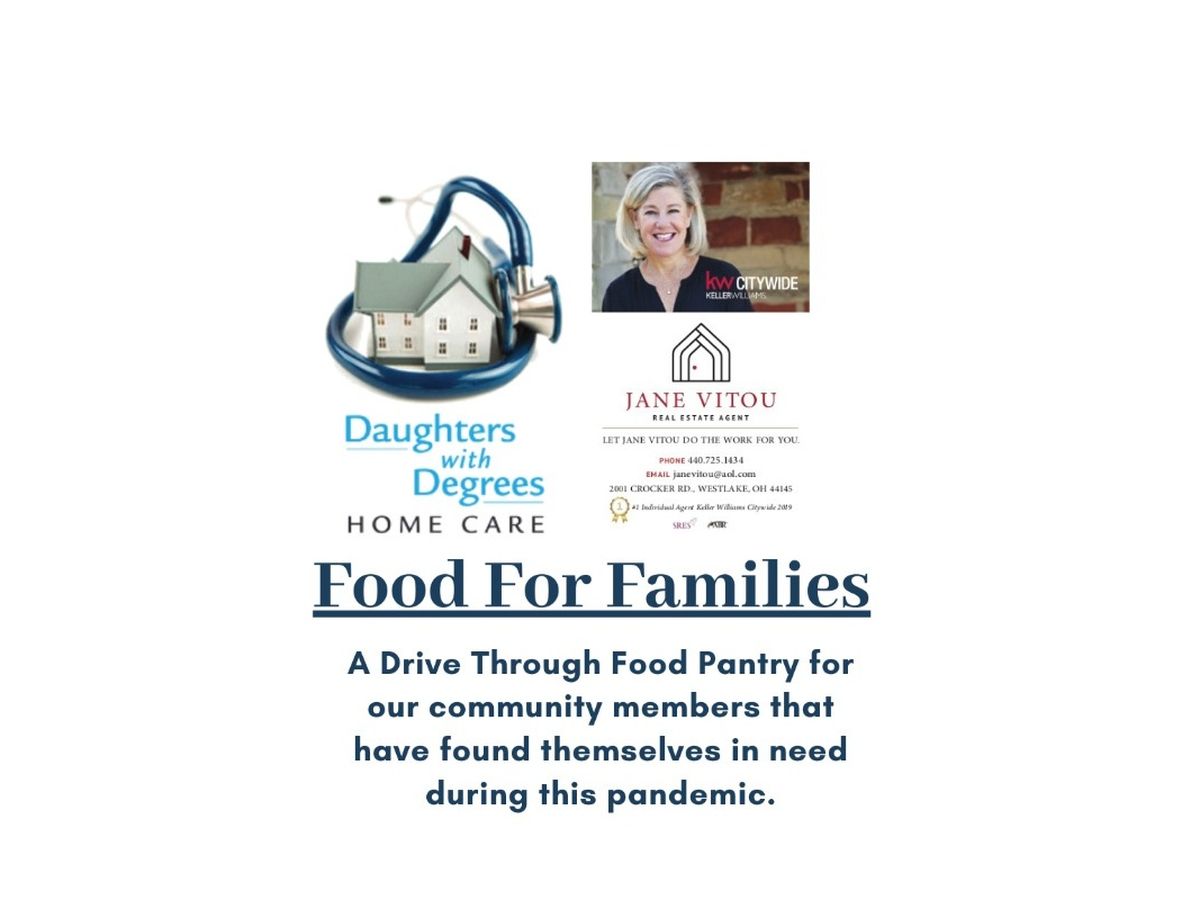Daughters With Degrees Home Care (owned by Ellen Minerd and Eileen McGunagle) along with Keller Williams’ agent Jane Vitou are teaming up to provide food for those in our community who find themselves in need during the pandemic! On Saturday, May 2 we will offer a drive-through food pantry at Saint Christopher Church in Rocky River from 10 am -12 noon for anyone that finds themselves in need of food. Simply pull into the parking lot off of Detroit Road and bags of food will be loaded into your trunk by volunteers. There will be no need to get out of your car.