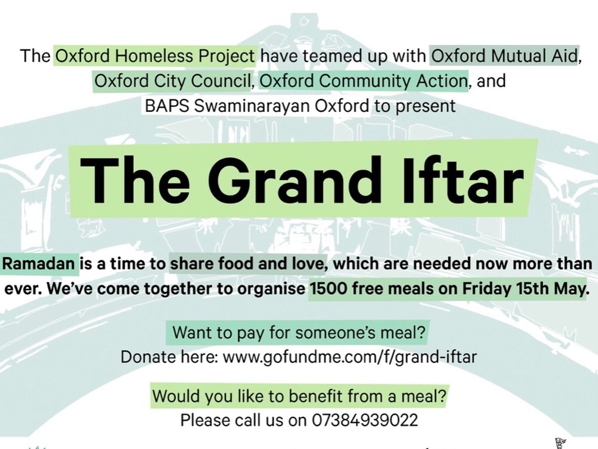 The Grand Iftar is an inclusive voluntary community project organised by Oxford Homeless Project founders Shabnam Sabir and Tayyaba Hameed.