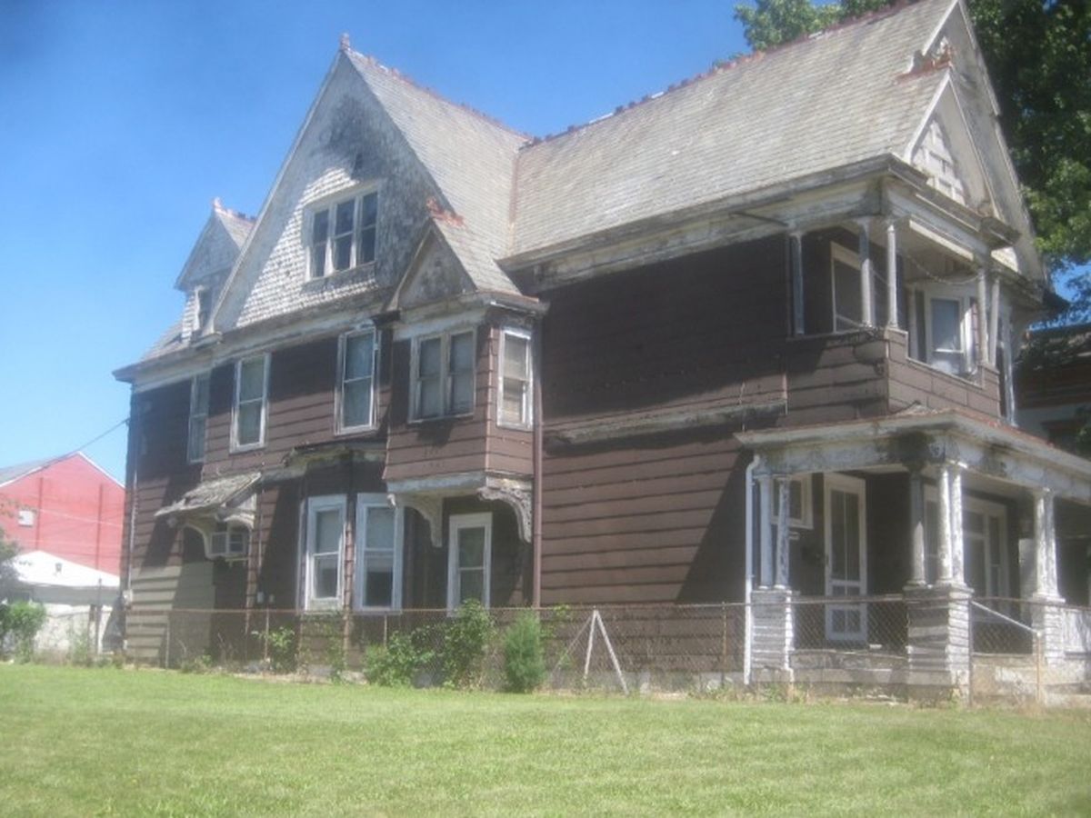 The majority of her restoration will be exterior in nature, though her long neglected interior demands attention just the same. Her downspouts and gutters have long since given way and allowed years of water to bore through and rot much of her wooden gingerbreading, eaves, and easements. Her porch needs to be replaced 100% with care taken to restore pillars, railings, and intricate carved wood. Her siding MUST be replaced with care taken to preserve her historical integrity; vinyl simply will not work when her time period calls for wood. Her three season room has to be completely torn down and rebuilt due to how far and long the wood rot has been allowed to progress (with care to remove a nest of bees currently squatting in the exposed rafters and rotting insulation). The library's quintessential flocked wallpaper will need to carefully continue to be exposed and preserved, though it is likely that a pattern will need to be professionally made and missing sections replaced. Her kitchen is in shambles and will need to be replaced and brought back to life with care to preserve historical attributes while making way for modern conveniences and needs. The bold encaustic tile floors in the dining room, scullery, water closet, and entry way must be repaired and missing tiles replaced. Cracked plaster and interior water damage will require contractor intervention in order to maintain integrity and rotted portions of wood and walls will need to be replaced with utmost care and precision. Last but not least, her grand ball room must be 100% refinished as it was stripped sometime within the last 50 years and turned into storage with missing/rotted floor boards.