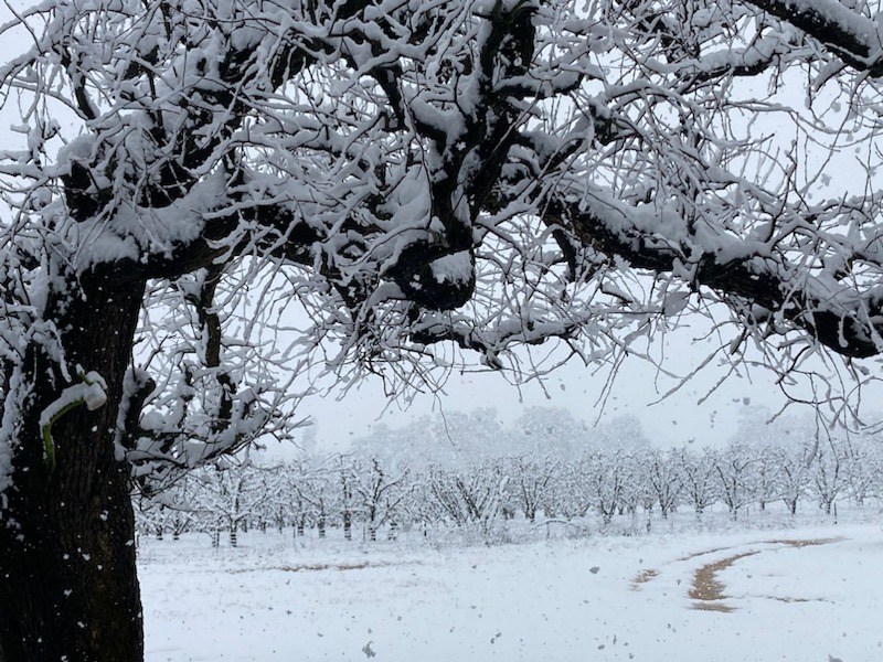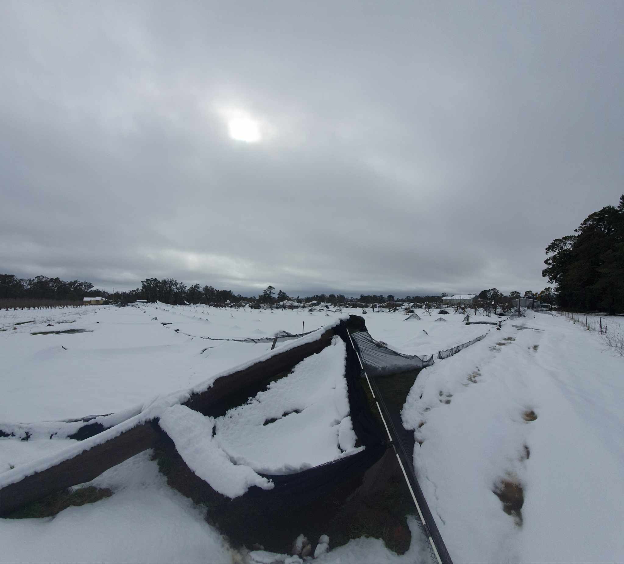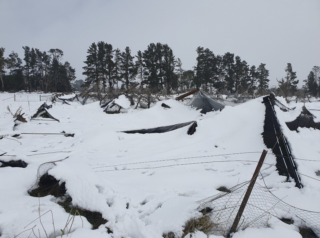 But in a heartbreaking turn of events, the orchard recently endured the most significant damage from snowfall since its founding over 160 years ago. I'm sure all us locals experienced the day beginning with much excitement, as our backyards turned into a winter wonderland. I vividly remember walking through the orchard with my husband Tom and father in law Warren at about lunch time, realising the nets were falling down around us.