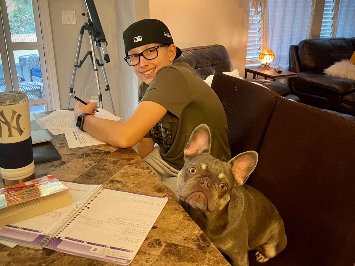 Grey is in 8th grade and in the advanced STEAM program, National Junior Honor Society, and he is doing fantastic. He has to work twice as hard as he used to, but he rarely complains and keeps his signature positive attitude.