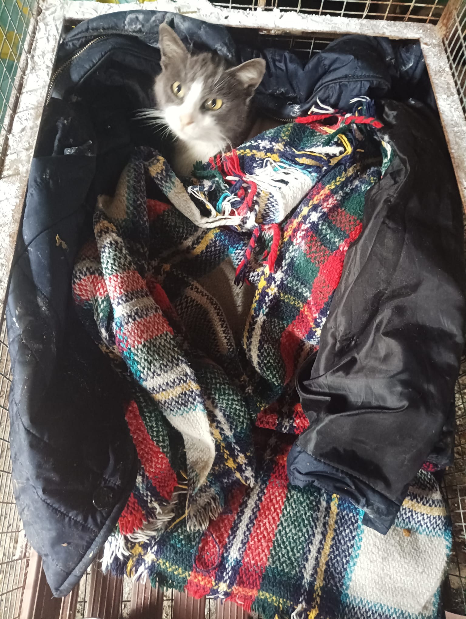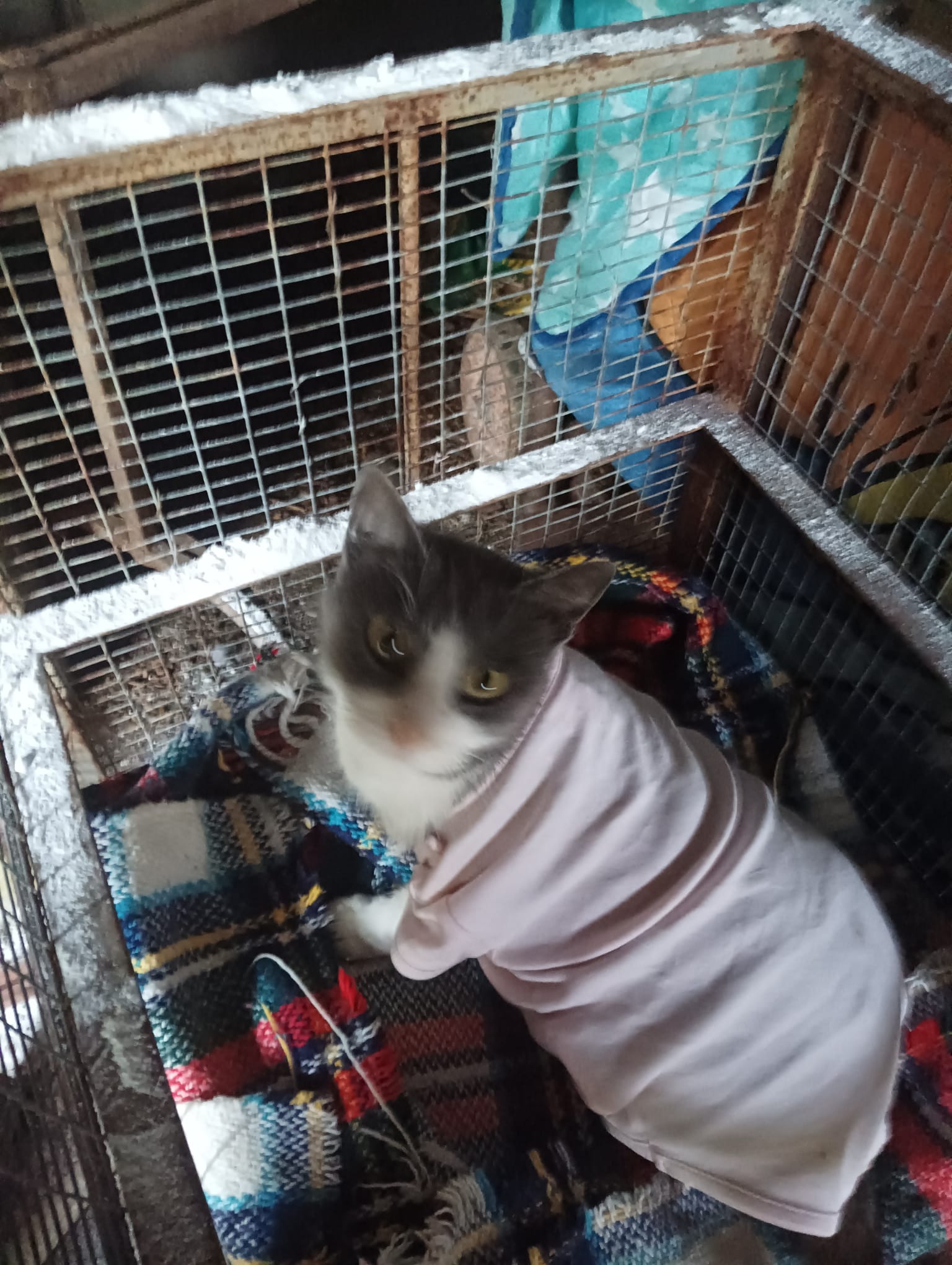 Grigina È arrivata nella Colonia di Stella e Domenico circa quattro mesi fa, ancora diffidente, stella non è riuscita a prenderla per poterla sterilizzare in tempo ed è rimasta incinta, è stata sempre monitorata e qualche giorno fa ha iniziato il travaglio, giorno 20 però si sono accorti che qualcosa non andava e cominciava a perdere sangue. La corsa d'urgenza in clinica, operata appena arrivata, aveva quattro micini M0rti, ed uno incastrato nel collo uterino, stava andando in setticemia, ora è al caldo in ripresa , sta facendo antibiotico e tra qualche giorno andrà a controllo.