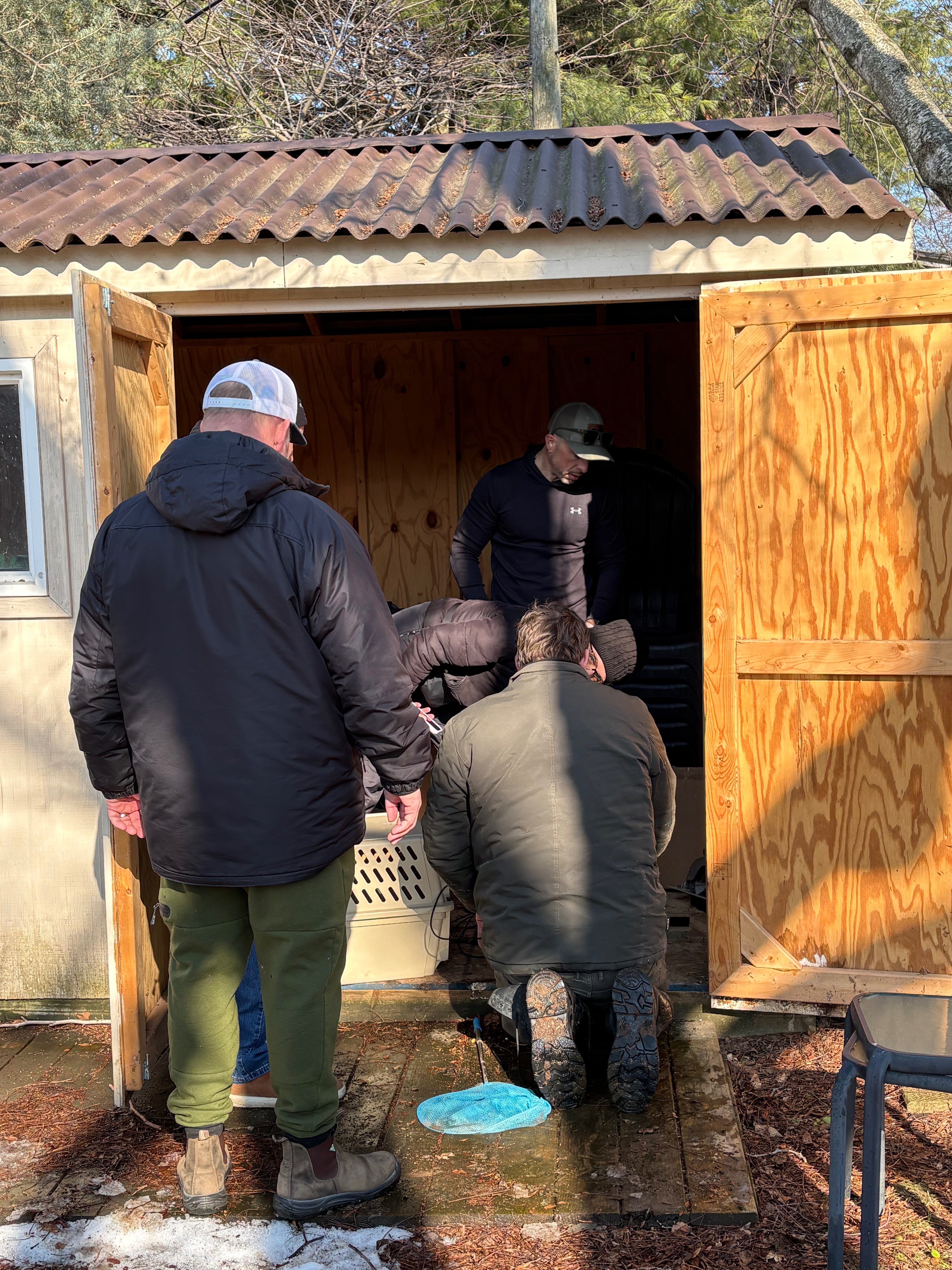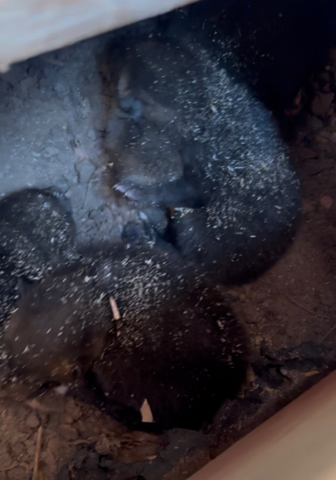 Then we heard it - faint cries coming from under a shed!