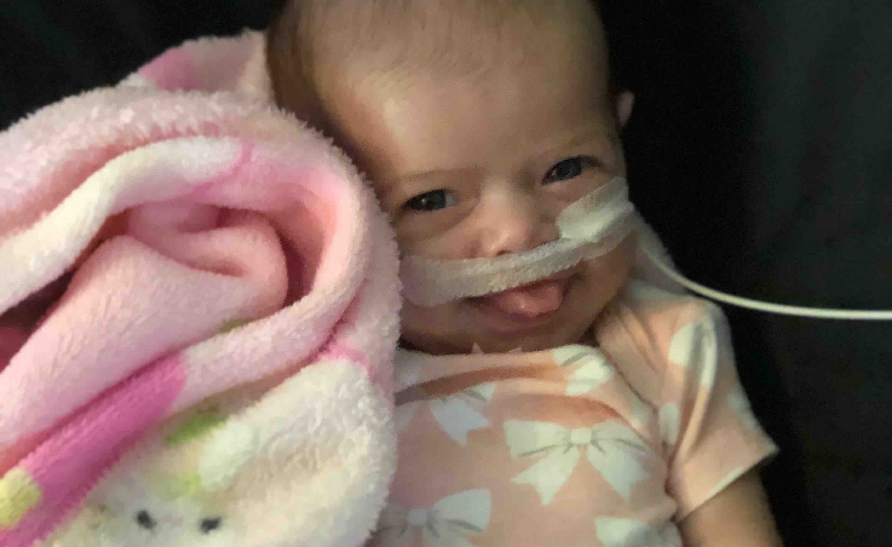 Ridge and Morgan Grinstead’s baby girl Ella Kate is 2 months old now and has had a rough life so far! She was born at 37 weeks via C-Section after Morgan was induced due to gallbladder issues. Once induced Ella’s heart rate kept dropping when a contraction hit so the decision was made to go ahead with a C-section. Once born her O2 stats were low and wasn’t quit coming up enough to make her pediatrician comfortable so she was sent via ambulance to Coliseum Hospital in Macon Ga where she spent 2 days in the NICU being monitored. Fast forward 4 weeks and sweet Ella has been having bad screaming fits that concerned Morgan and Ride. They went to her pediatrician who made the decision to swap her formula and add rice to her bottles because she was suffering from silent reflux. That didn’t help; the fits became more and more severe and frequent so 2 weeks ago on April 25 Ella was admitted to The Children’s Hospital Navicent Health in Macon Ga. There the doctor began doing small adjustments here and there to see if they could Get the reflux under control. The fits continued to get more and more severe so they decided to put a NG tube in (feeding tube) and that didn’t help so a few days later we advanced the tube further through her stomach into her intestines to try to keep anything from refluxing to get her some relief. They sent us hope that following Wednesday on May 1. We got home and still on the feeding tube with few fits the next few days. Come Saturday May 4 Ella began with another fit that lasted several hours. Ella’s GI doctor told us to come back to the CHOM and get admitted through the ER. Fast forward to today May 7th we have started loads and loads of blood work checking for Kidney, Liver, and Metabolic Diseases; we also did a full body X-ray to ensure we didn’t have any hairline fractures that could be causing pain as well as a CT scan to ensure there is no brain swelling or bleeding. Tomorrow the doctors will go in and do an endoscopy to ensure here is no blockages or things we need to be concerned with.