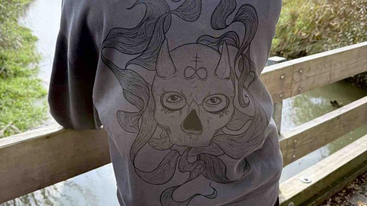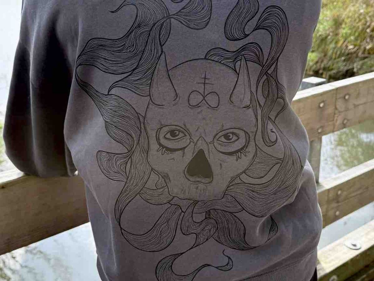 Dunklere Ästhetik hat mich schon immer sehr angesprochen. Somit möchte ich klare Designs mit okkulten (o.ä) Motiven erstellen, um mir selbst auch treu zu bleiben. Einen ersten Druck, habe ich bereits auf einem selbst erworbenen Hoodie machen lassen, um einfach mal zu sehen, wie es wirkt.
