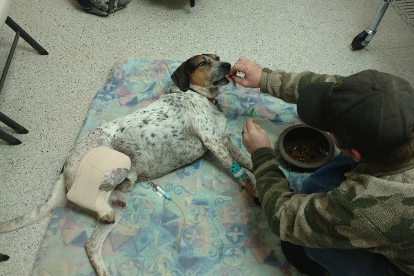 This morning around 7am our dog Gunner was hit on the hwy. The person who hit him left him laying there helpless. Luckily a very nice couple stopped and called us, they were already taking him to the vet. We are so grateful of them. Gunner is now at the Emergency Vet. He had a dislocated hip, and so far no use of his other back leg. They got his hip back into place, now we are just waiting to see if he has use of the other leg. He also suffers from a concussion along with some cuts and road rashes. We don't like to ask for help, but this time we need some help. The vet cost are adding up fast. Just today we spent $1,700. We love our animals as family, they are our fur babies. Any amount helps. Thank you so much.