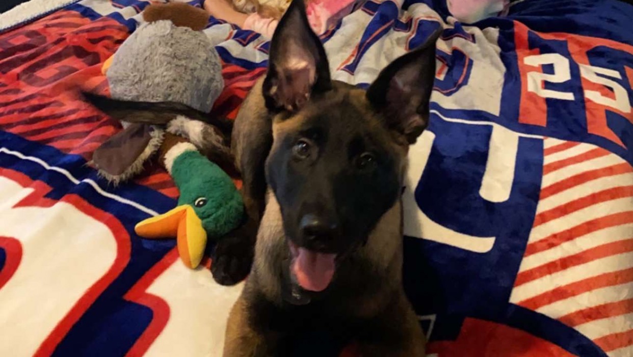 This is our 5 month old Belgian Malinois puppy Gunner who our world revolves around.