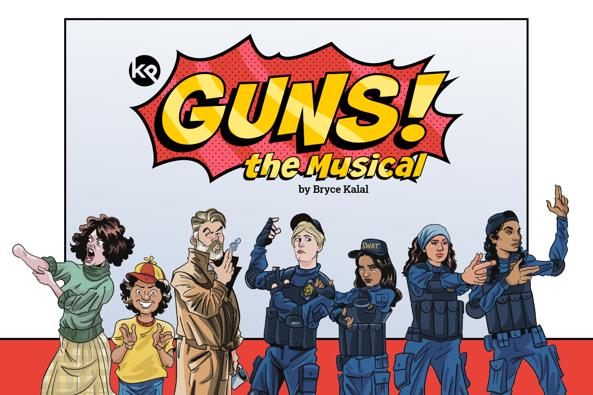 GUNS! the Musical is an over-the-top comedic rock musical that satirizes one of America's deadliest problems by making it the butt of every joke. There are no gun props nor gun sound effects—the cast use their fingers, bodies, and voices in a slapstick style reminiscent of vaudeville, commedia, and Looney Tunes. Audiences can expect stupid puns, outdated pop culture references, and more "pew pews" than you can point a finger gun at. Premiering July 31–August 10 at Theatre in the Round in Minneapolis during the Minnesota Fringe Festival.