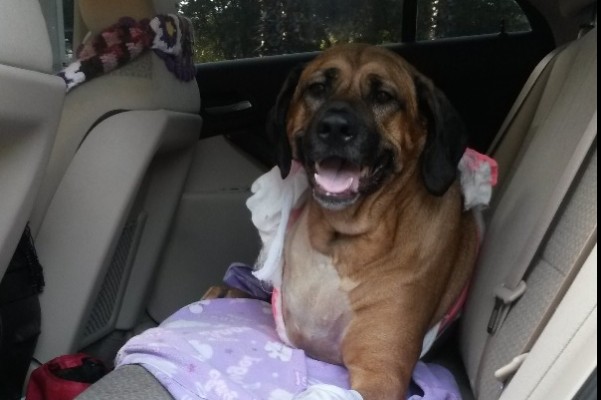 Angie her fairy God mother and nurse from Pine Lakes Animal Hospital has made daily house calls to change her bandages and make sure she is doing as well as possible. Angie knitted Ziva a beautiful cancer scarf with an Angel a cancer ribbon and the word hope on it. Ziva wears it every wear since she received it.