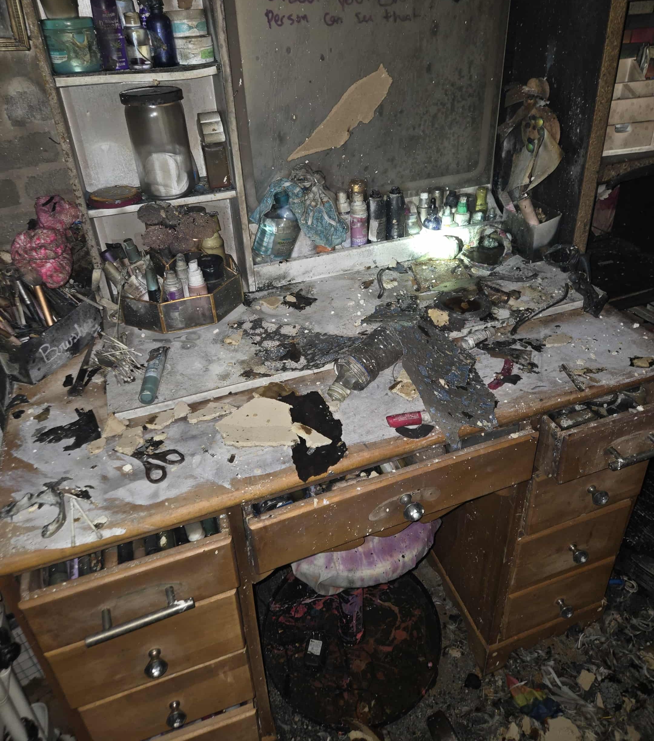 On November 4, 2025, there was a fire at my home. It started in the basement and destroyed my daughter's (Brittany's) bedroom. All her furniture, clothes, shoes, purses, makeup, and personal items are gone. Nothing is left of her room or the rest of the basement due to the fire and water damage.