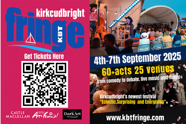 We're in our third year of putting on Kirkcudbright's very own Fringe Festival. An exciting, vibrant mix of music, visual arts, performance, comedy, walks and talks across a range of subjects from local history to the big questions of the day. We are committed to providing a diversity of events for all ages, all backgrounds and interest - from the serious to the fun.