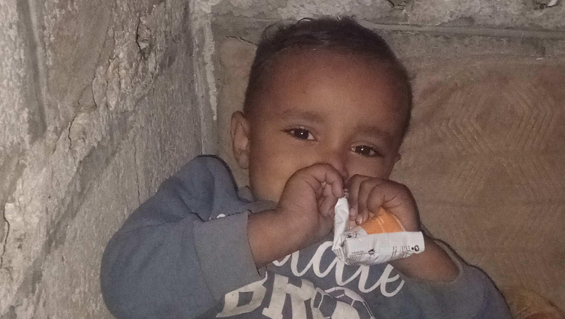My eldest son, who always tries to help his siblings, went to the aid centers to get some