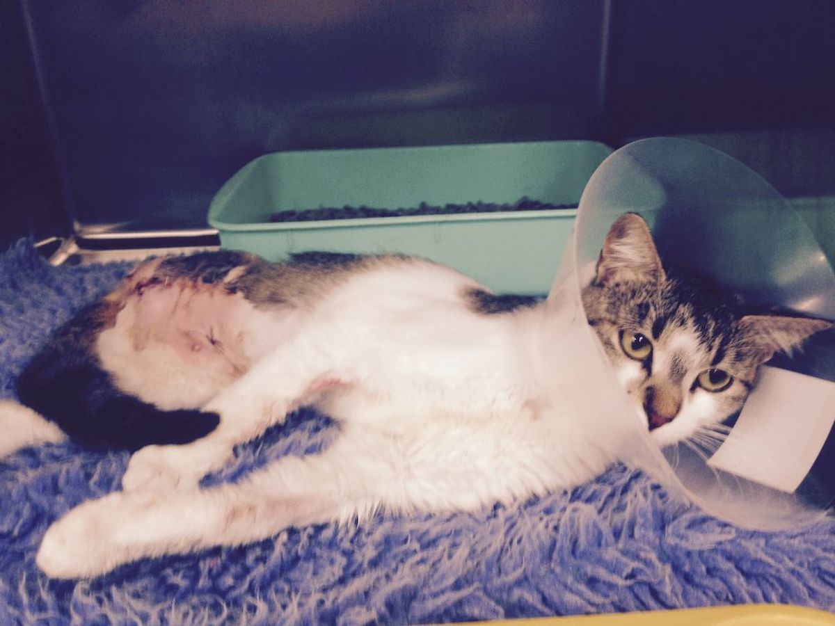 Bridie is a 6 - 7 month old kitten that found herself in a country pound in Victoria, Australia recently . Unfortunately this is something that happens with regularity. Animals that have no identifcation of either a collar and tag or a microchip are held for 8 days and then if they are not adopted by a member of the public or are rescued by an animal rescue group they are put to sleep.  Robyn's Nest & All The Rest Animal Rescue Inc. try and save as many adult cats and kittens that find themselves in this situation from the envitable by rescuing them , get their required vetwork done, putting them in foster care and finding them a new forever home.  Bridie's case though was even worse than just being a kitten in a pound facing death, for you see Bridie was a victim of severe animal abuse. One of her rear legs had been broken to the extent that the bone was exposed and pointing outwards, and, to make matters worse, she had been  cleared by a local vet as being 'fit' to be incarcerated in the pound, without pain medication as they reported the bone had just healed incorrectly. Besides having a broken leg that she had to drag around, and obviously being in pain ,(even though cats do not often show that they are) she was severley underweight, and, covered in fleas. Luckily we managed to secure her release after her initial 8 day period and she was taken to a foster carer in town who straight away gave her some pain medication. Within a short space of time, she was eating and trying to stand up , two things that she had not been really doing much of in the pound. After a few days in care, she made the long journey to Melbourne where on arrival we took her straight to our vet to have her accessed. Her leg was so badly broken there was no chance of it being saved and so we made the decision to have her leg amputated. There was also a chance that her leg was infected and we do not still know if this was the case. Bridie was on methadone prior to the surgery to help manage her pain and unbelieveably still was a purry , friendly little girl which is amazing considering what had happened to her. On Thursday 29th Jan Bridie had the surgery to amputate her leg. Not only was the leg badly broken but her foot had pressure sores and fur loss from where she had been dragging it behind her. We also decided to have her spayed at the same time so she would only have to have one anaesthetic. Her surgery took an ardous one and half hours, which for a small girl like her, who barely weighed 2 1/2 kilos was long term for her to be anaesthetised. Thankfully she made it through the surgery ok. It will take a little while for her to learn to balance with three legs and we are not sure if she will need more surgeries at a later date. Our vet is certain her broken leg has been caused by being thrown against a wall or kicked really hard. How someone could do that to such a sweet little girl is beyond our imagination. She flinches at sudden movements or noise and if you raise your  hand near her , she starts to shake.  Bridie has shown great strength and courage, that she is a fighter, and , we hope that she continues to fight and get through whatever hurdles she may encounter in her recovery.  Being a not for profit animal rescue group we do not receive government assistance and rely solely on the generosity of others to pay our vet bills. We are hoping you can spare some money to enable us to pay off this current bill so we will be able to help more little soldiers like Bridie. Than you for your kindness