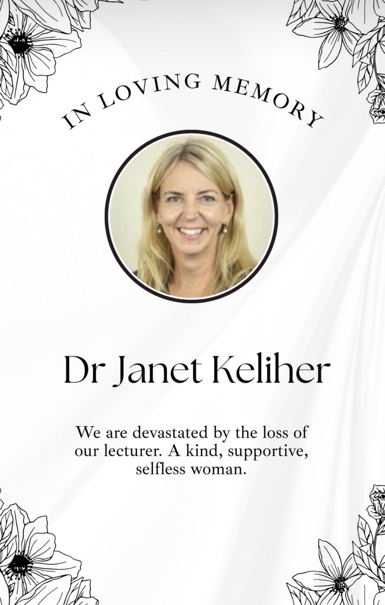 I will be running a the H&T salt marsh half marathon in April in memory of Dr Janet Keliher. Janet taught at the University of Exeter and