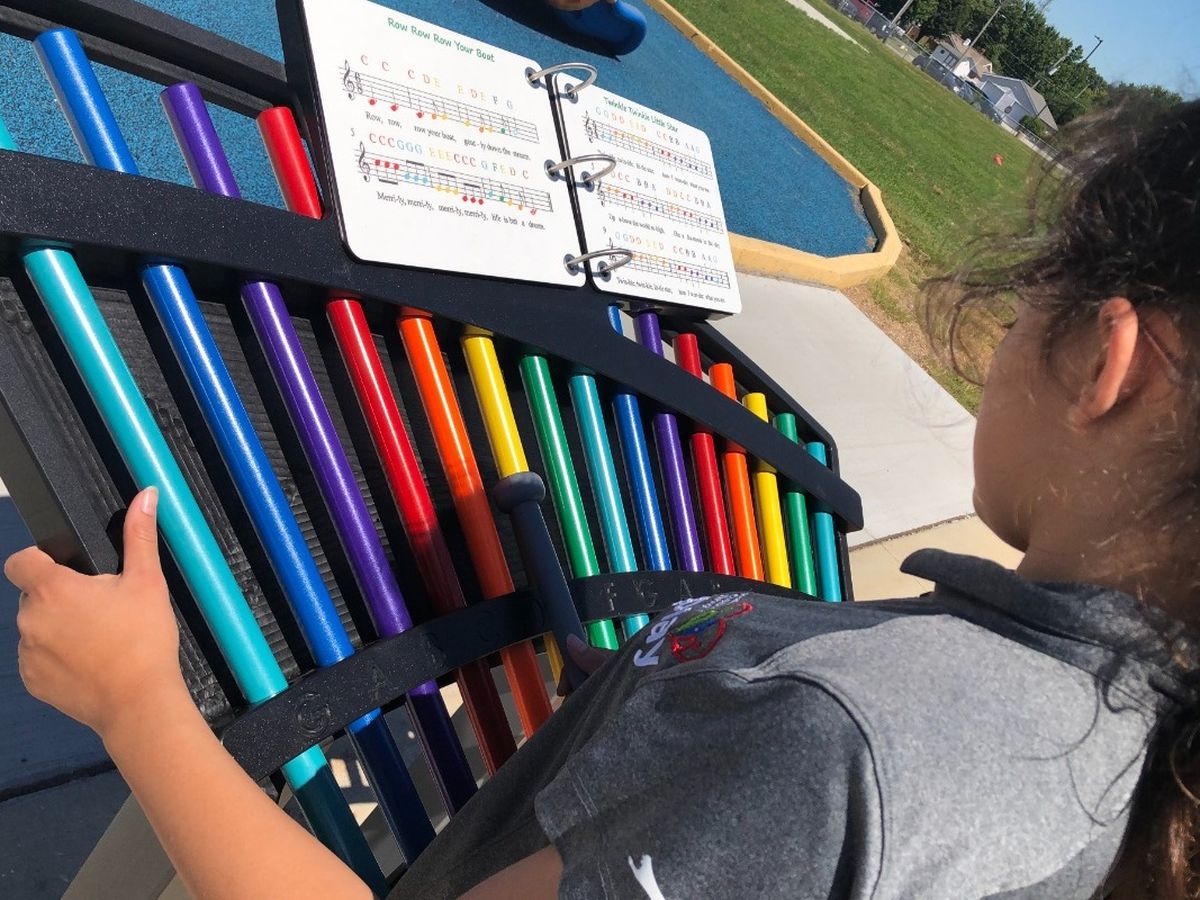 Due to the high volume of visitors, one of Kade’s Playground’s musical pieces is worn and in need of replacement. We are asking our community to help us fund a new Musical Harmony instrument recently released to the playground market. The Serenade is a high quality, real harmonic instrument that allows everyone from novice to expert musician to be engaged. This piece will join the ensemble of others currently at Kade’s in the music section. It will have a weather coated music book offering various songs that can be played by note or color. People of all ages can make music just by following a color key.