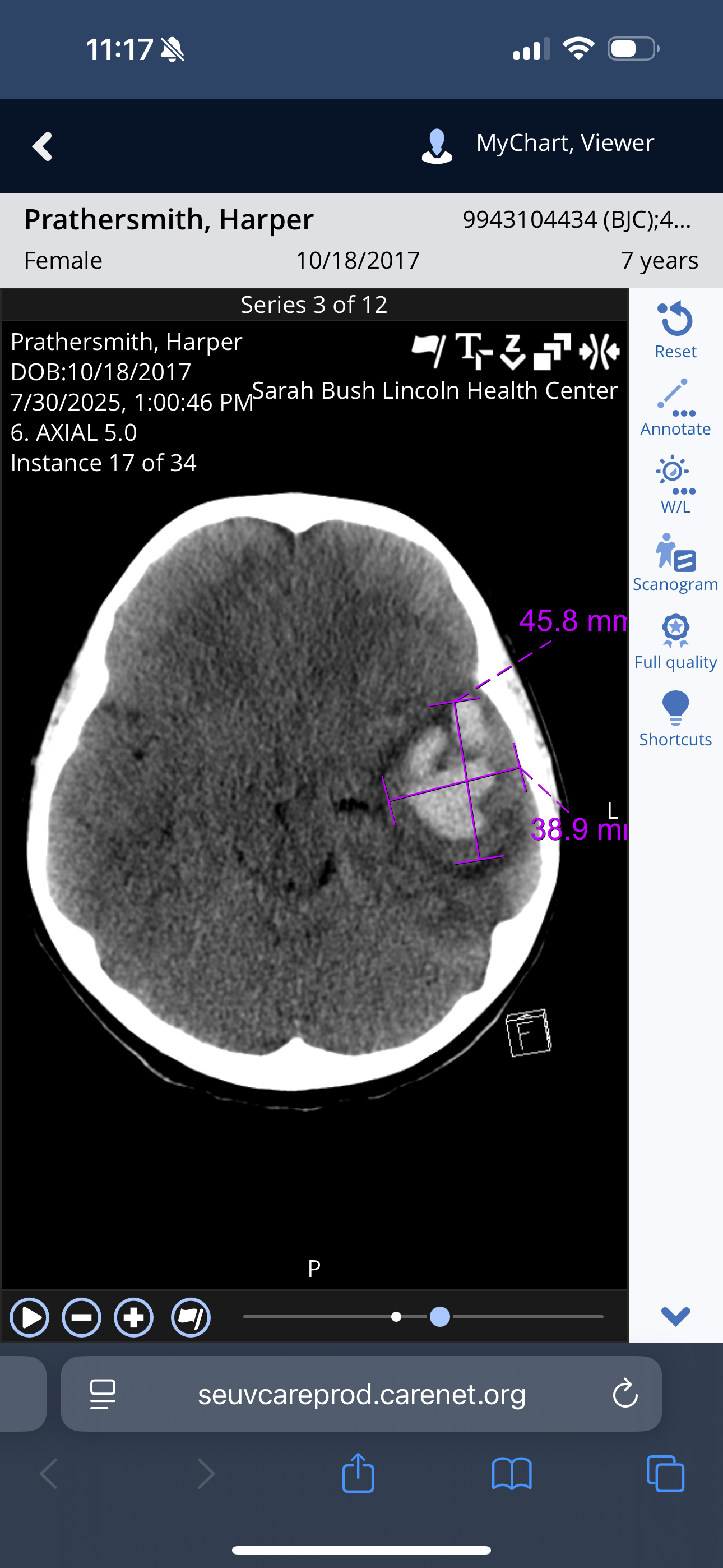 I called everyone I needed to, and then our whole world changed. Our once normal 7-year-old would have had her entire world change forever. When the doctor returned to the room, she said there was a storm in St. Louis, so they sent their ambulance to get her. She also told us that she needed another CT scan, this time with contrast, so her neurosurgeon would be able to see better what was going on.