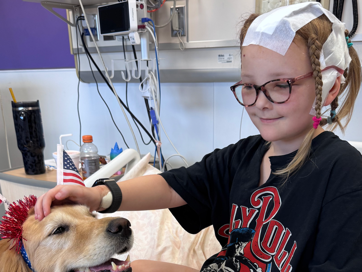 Aug 27th, the day that never ended, yet also went speeding by. The day that saved our beautiful 7-year-old princess from having another rupture that would make her lose her speech forever. From everything we were told the day before surgery, she is a fighter and will punch, kick, bite, and scream to make sure the medication to calm her does not work. When we told everyone on her anesthesia team this, they said that it is perfectly OK and means she is going to fight through everything and will make her so strong as she gets bigger. They told her that options and a strong personality are everything they want from a child. When her surgeon came to visit us before the surgery, he said his goal for after the surgery was for her to make some growing sounds and move her arms and legs. He also told us that she would come back with two more IVs in her ankles and a central port put in during surgery to help with medication and any blood that is needed during surgery. After 13 hours of surgery and phone calls every couple of hours to let us know what was going on. We finally got to see our girl and see what her next hairstyle looked like, and I had prepared myself for something so much worse than what I saw. Her surgeons shaved just enough hair to do her procedure safely and not a quarter to half her head like he initially thought he’d have to. I also wasn't ready for everything, for the cords and IVs that I saw. It was so scary to see her this way, and it took everything I had not to start crying. Then we heard her beginning to make noises. Then she heard my voice and said Mommy, I need. I needed to listen to this because we were told not to be surprised if she returned to what she was when she first came to St. Louis. She couldn't say my name, she didn't remember who I was. Then Dr. McEvoy, her surgeon, came in and said she did amazing and that it was the perfect AVM surgery. There were no big surprises, and she didn't need as much blood as he had thought she would. He said this AVM was not as nasty as some can be to remove. Then he got to her scream at him to get out of her room and that they were no longer friends, and he just smiled and said Well, that's more than I expected and I'm very pleased with everything I hear and see. And on that note, I'm going to leave her alone, and we will become friends again later. We thanked him one last time for saving her, and we all just relaxed for the next 8 hours as she had to lie flat because she had a second angiogram during surgery.