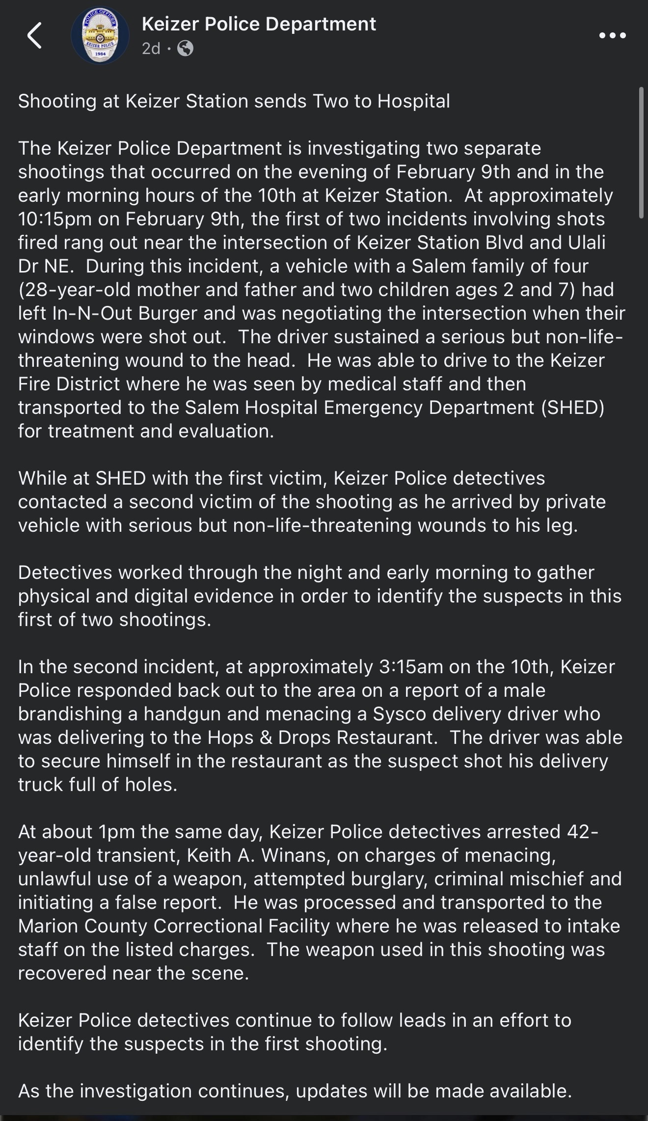 Three days ago, our family experienced something no one is ever prepared for. While at Keizer Station, we were caught in a shooting.