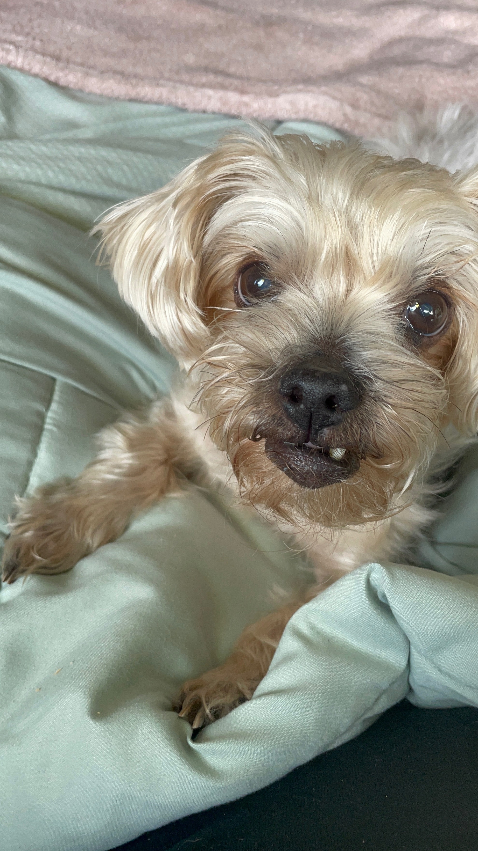 Thank you for reading our story — for caring about Minnie, my mom’s memory, and this little pack that’s trying its best to stay together. Minnie is gentle, loyal, a little bossy with treats, and provides so much therapeutic emotional support throughout or healing process. She reminds me every day that old age, disease and death can never alter or kill unconditional love.