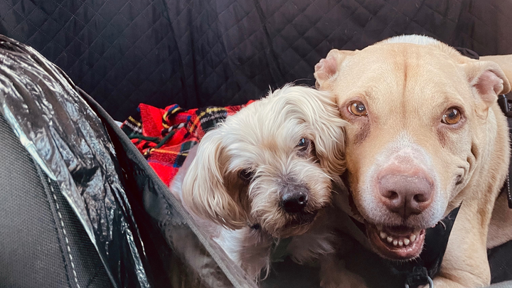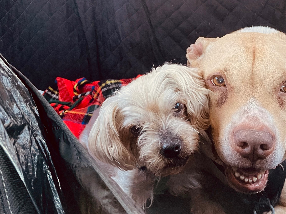Today, Minnie isn’t just a dog — she’s my protector, my guardian and my other dog Oakley’s only friend. Oakley is a tough, stubborn, sensitive staffy who doesn’t like other dogs… except Minnie. She’s the only one he trusts — the only dog he sleeps next to, shares toys with, and curls up with 80% of the day. Minnie is the center of our small pack, our little family. She’s the peace; the safe place for all of us.