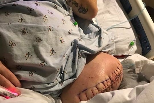 Unfortunately, pieces of the clot had broken off and traveled into the arteries of her left leg and blocked circulation. Her leg was quickly dying.In order to save her life, Doctors had to preform an amputation of her left leg up to her upper thigh.