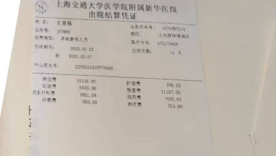 This invoice shows part of Stephen’s medical expenses at Hospital in Shanghai