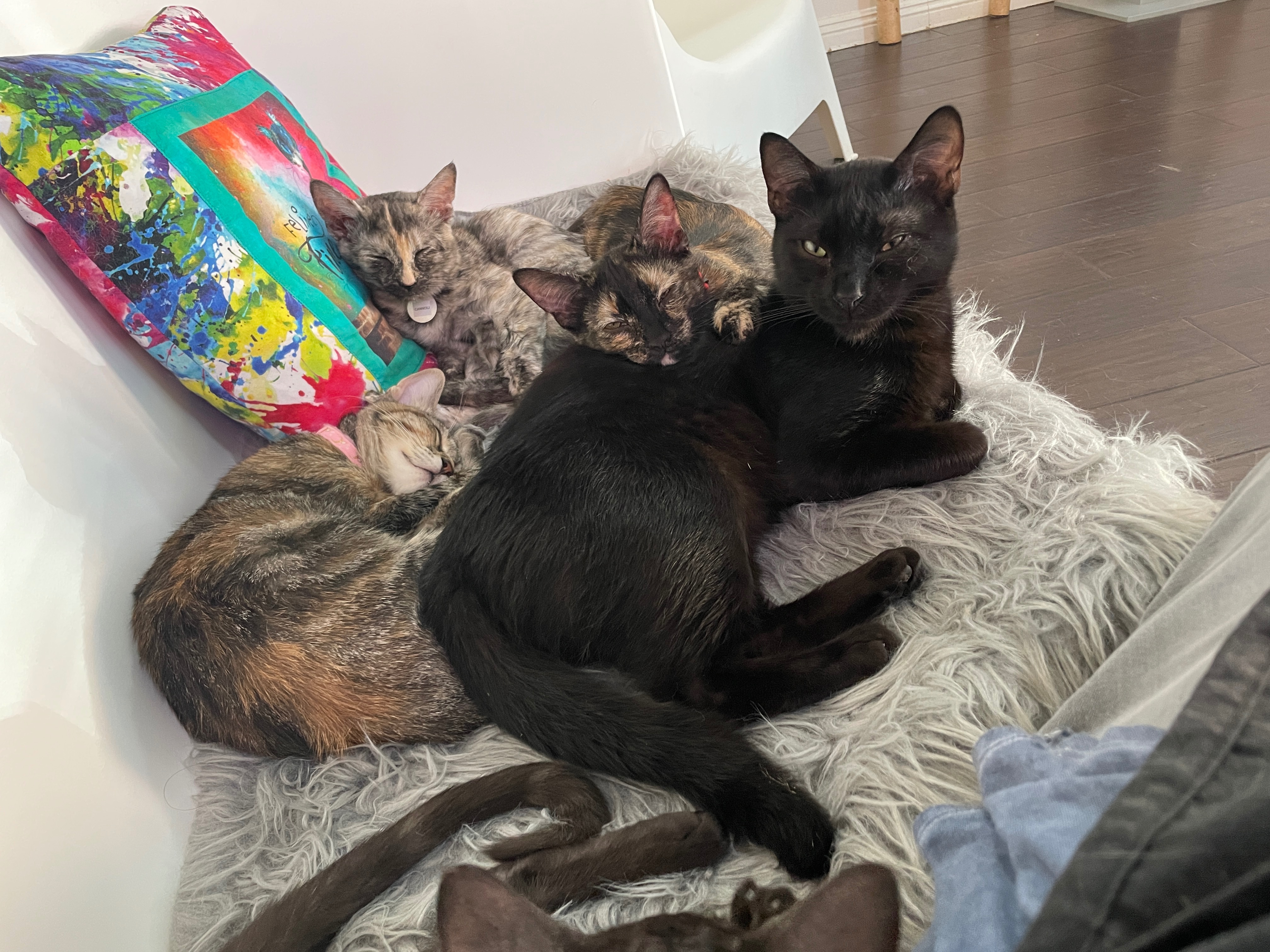 Ollie is sadly declining, but still surrounded by love. Twinkie and Pinto are still playful, happy, and full of life.