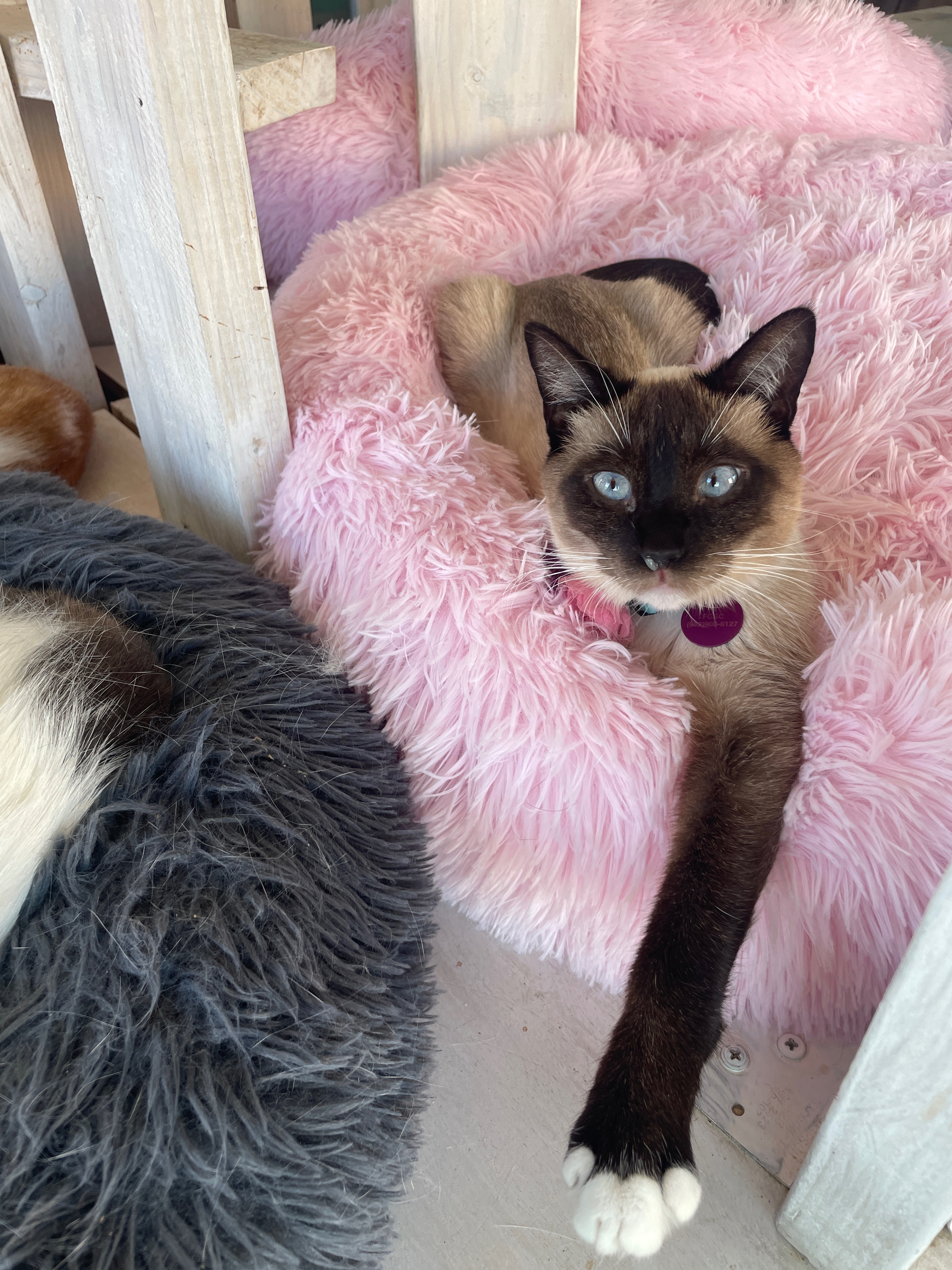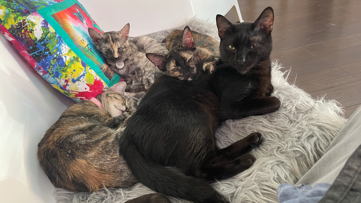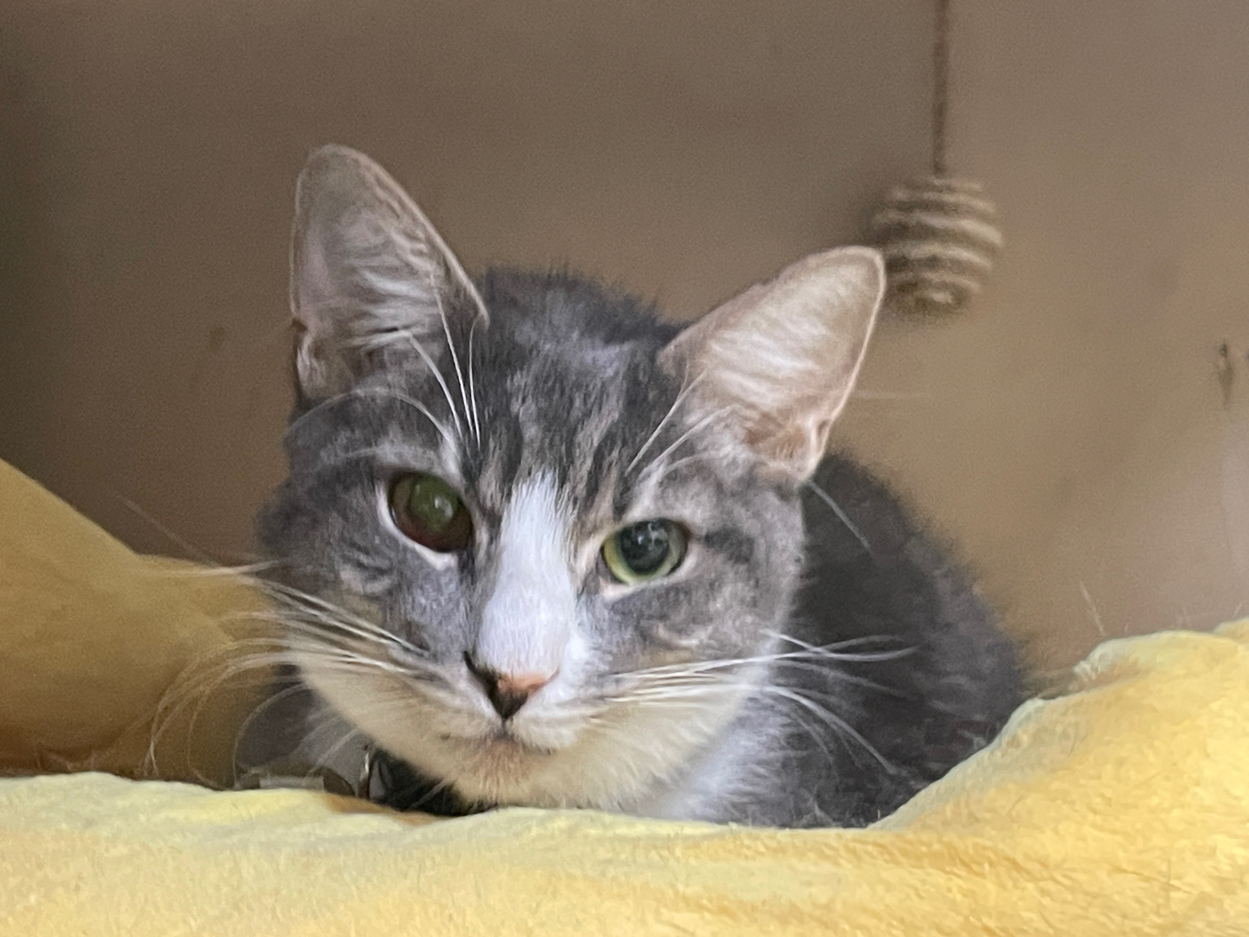 A true Velcro kitty who wants to be as close to you as possible at all times. Affectionate, playful, and deeply connected to her people.
