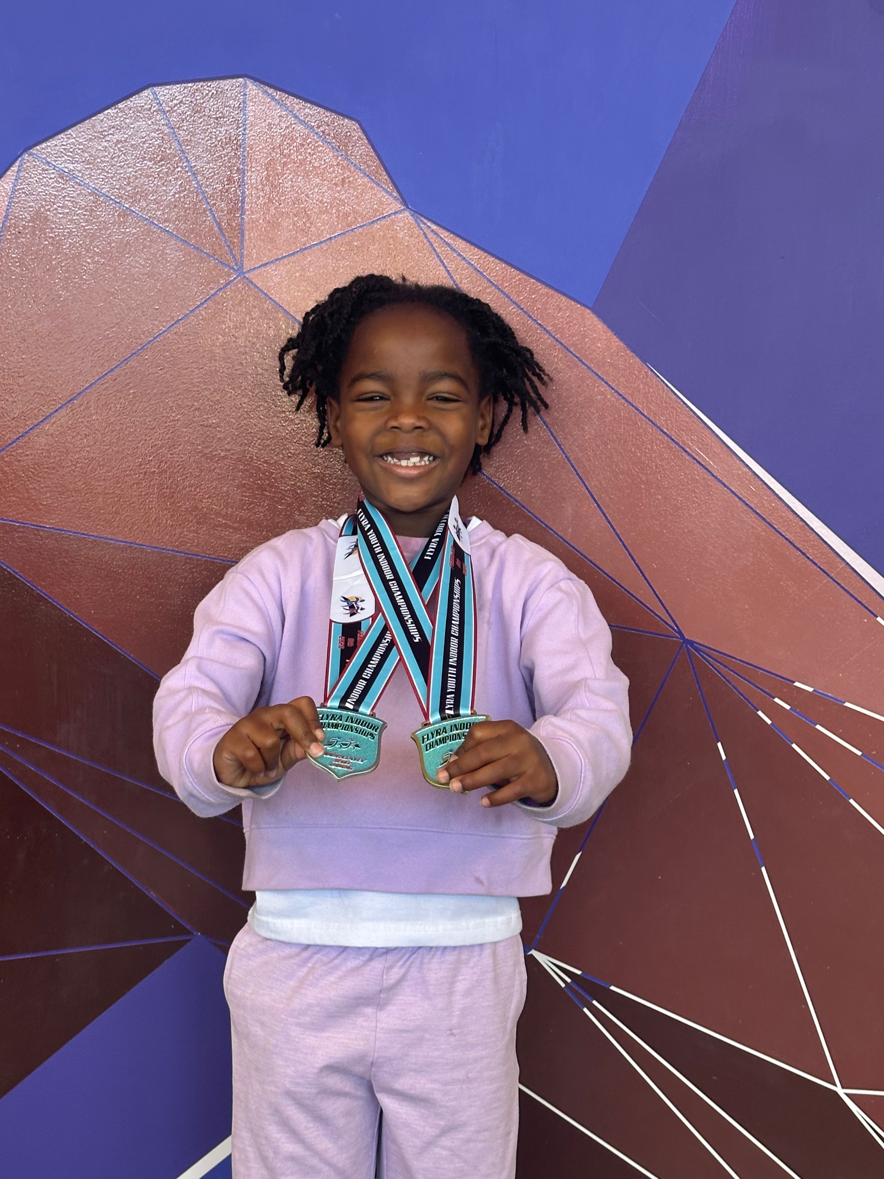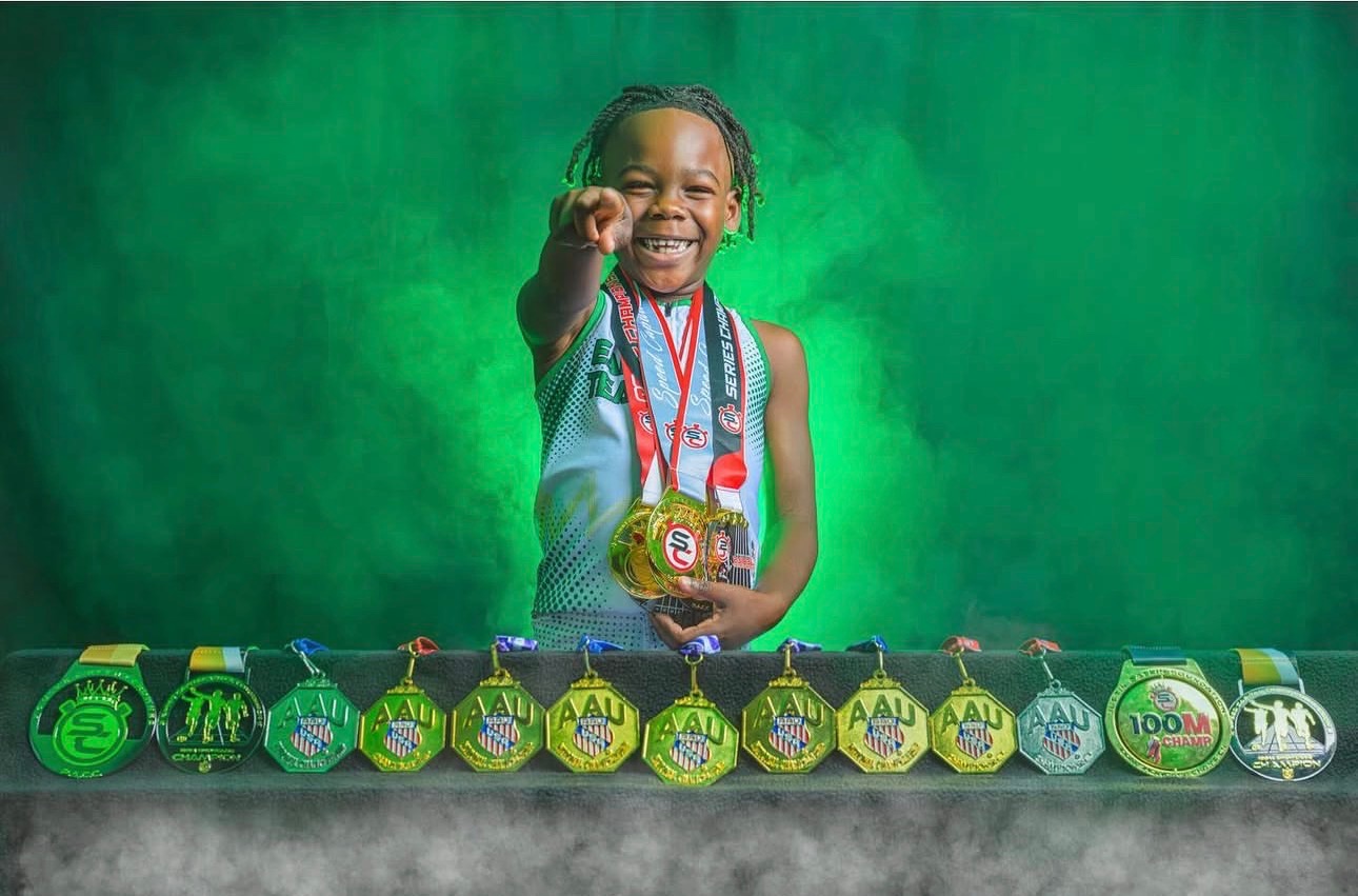 Trinity in her first track season has emerged a one of the fastest 5-year old sprinters in the nation. In just a couple of months, Trinity has won gold in 60m and 200m indoors and have a #2 ranking in both events heading into the AAU Indoor National meet.