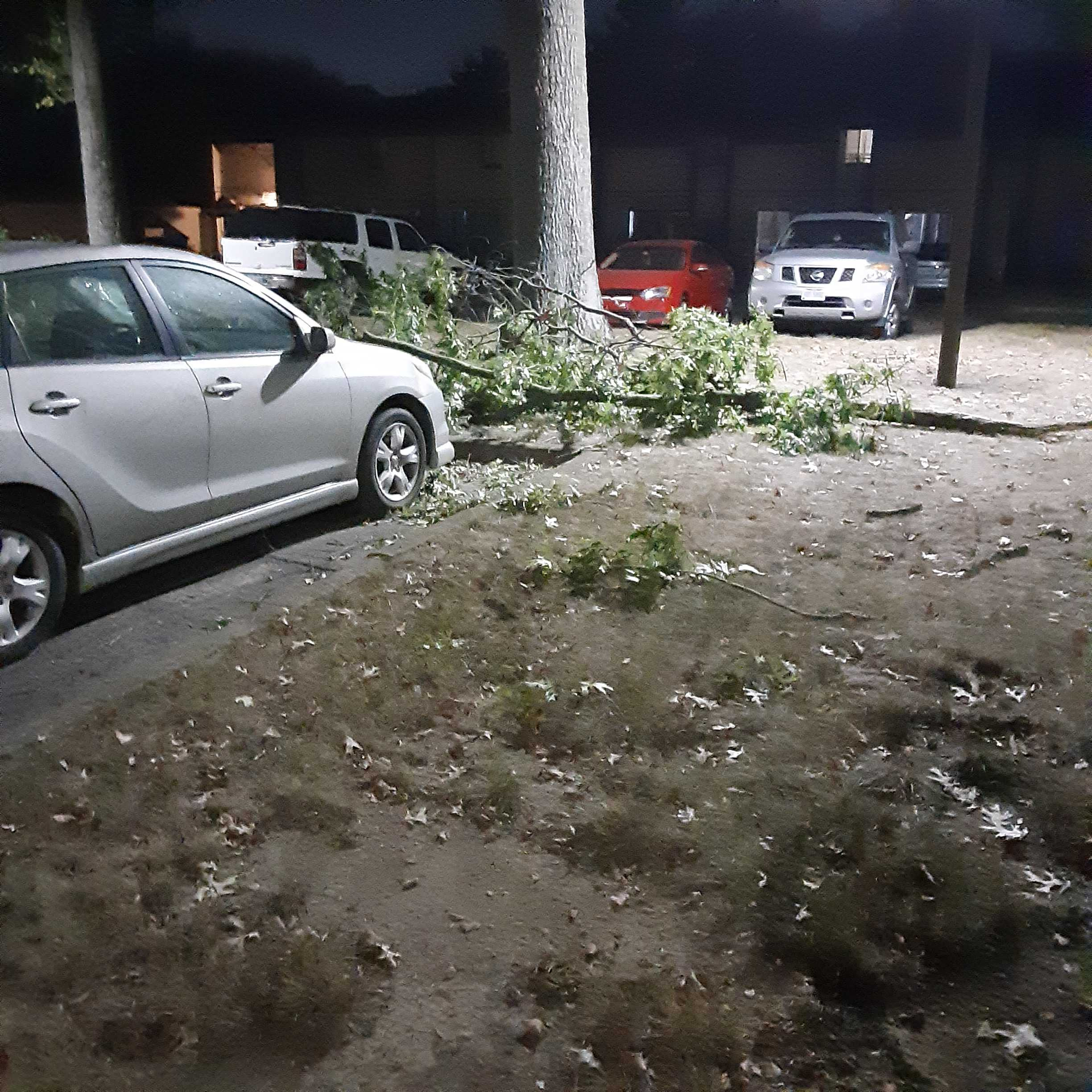 Today, I'd like to share the story of a dear friend of mine who has fallen on some tough times. She is a former U.S. Army veteran and the full-time caregiver for her wife, who has been battling an illness for years. As you can see by the photos, their car window and roof was hit by a tree branch.
