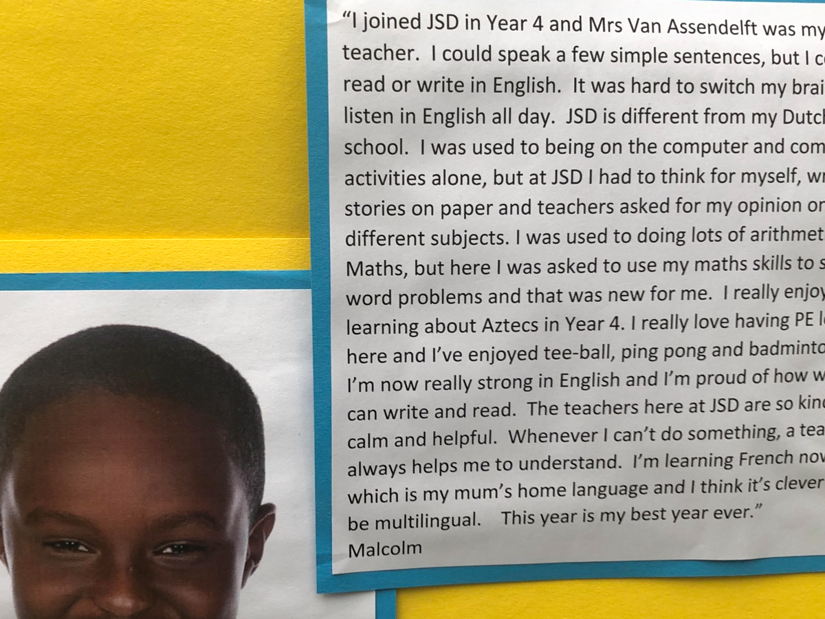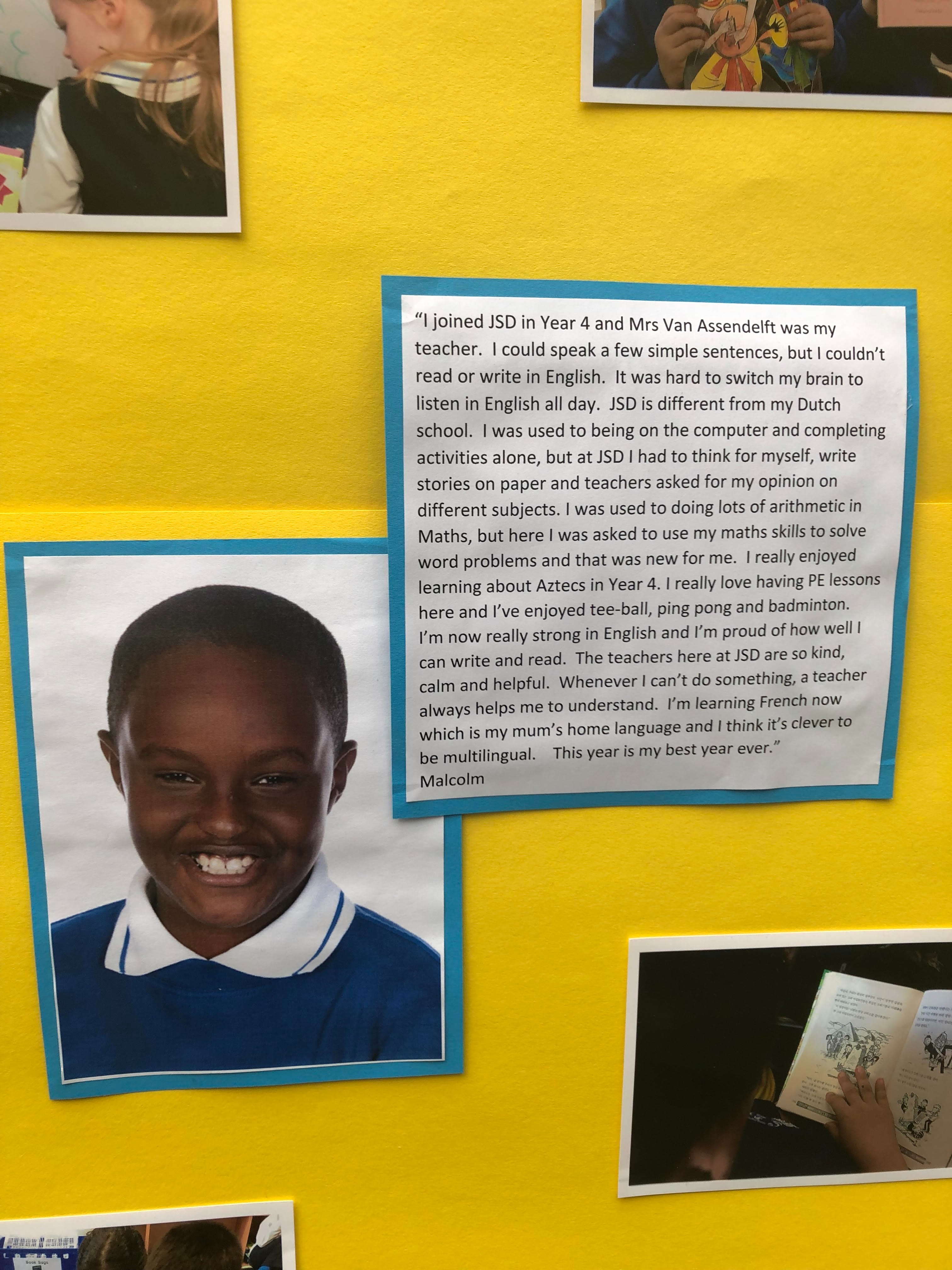 The British School System was the only school that unbiasedly allowed me, and since then, for nine years, I have gone from not speaking English to following regular education without any special needs, getting supported where needed, but never separated from the rest of my classmates. I have no hearing or speaking impairment; rather, I have learned to be more confident and no longer afraid to be rejected because of being different.