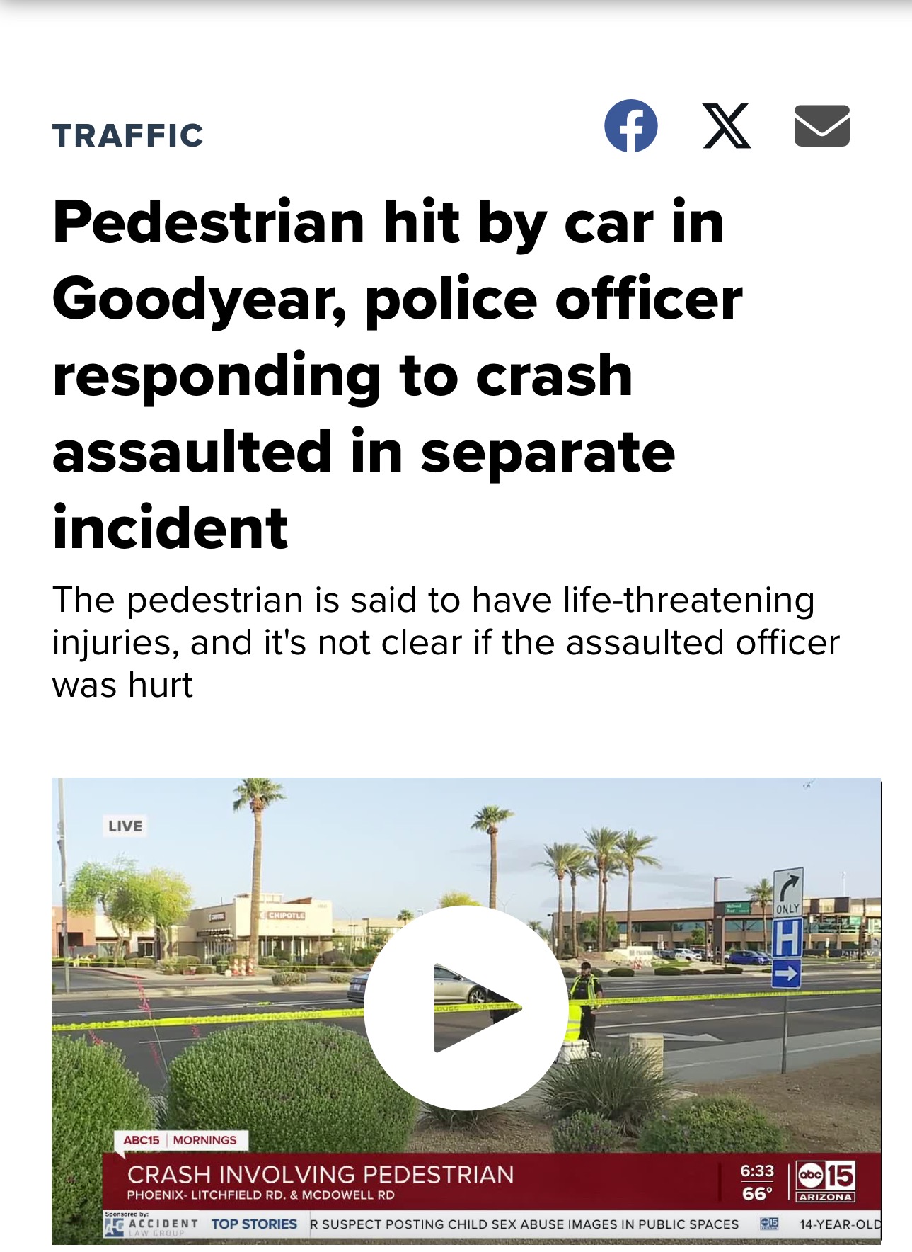 On April 17, 2025, at 4:30 AM, my husband was tragically struck by a car at the corner of Litchfield Road/McDowell while walking home from work just 1,000 feet from our front door. Thankfully, the driver remained on the scene and immediately called for emergency services.