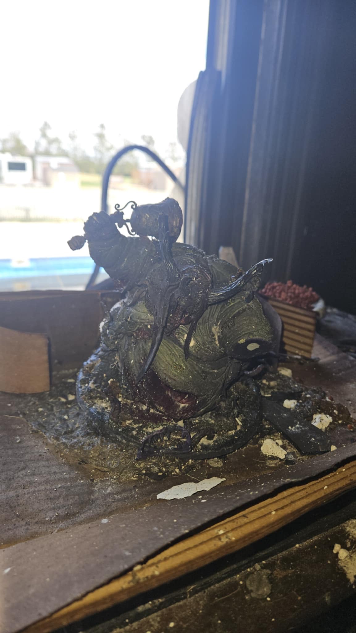 Among the losses was a Greater Unclean One model I had painted for him — a piece that meant a lot to both of us. It was melted beyond recognition in the fire, and seeing it like that broke my heart.