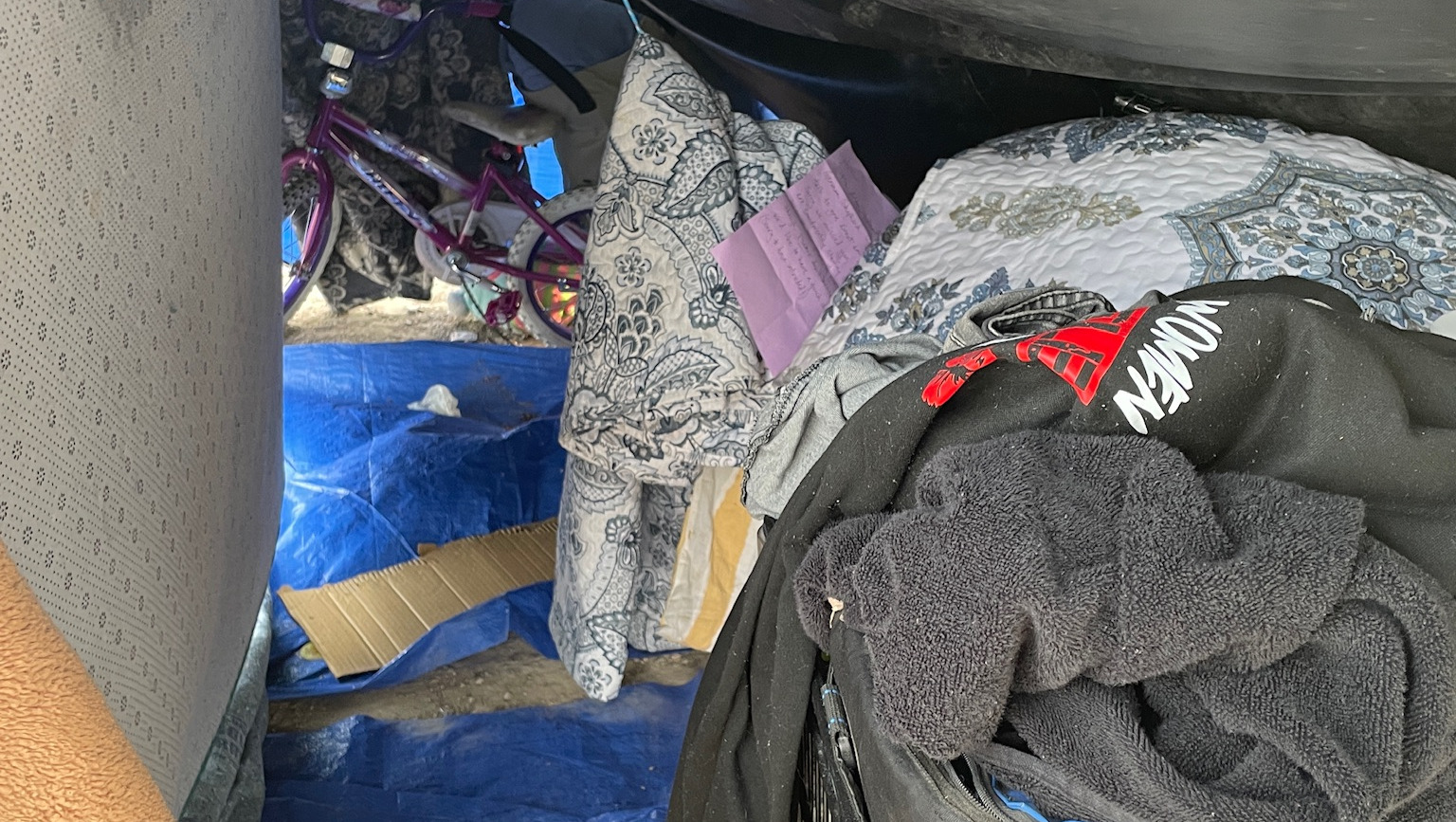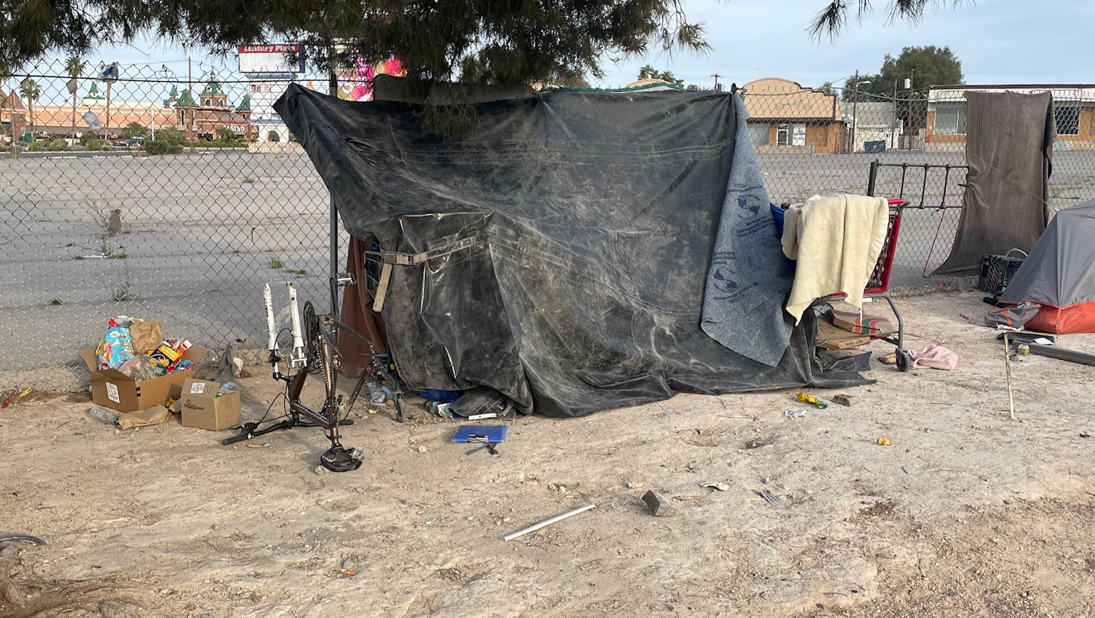 We’re Leland and Alex — professional musicians based in Las Vegas. A few weeks ago, we were passing out lunches to homeless individuals near Boulder Highway when we noticed two small bikes with training wheels sticking out from a tarp. It stopped us in our tracks.