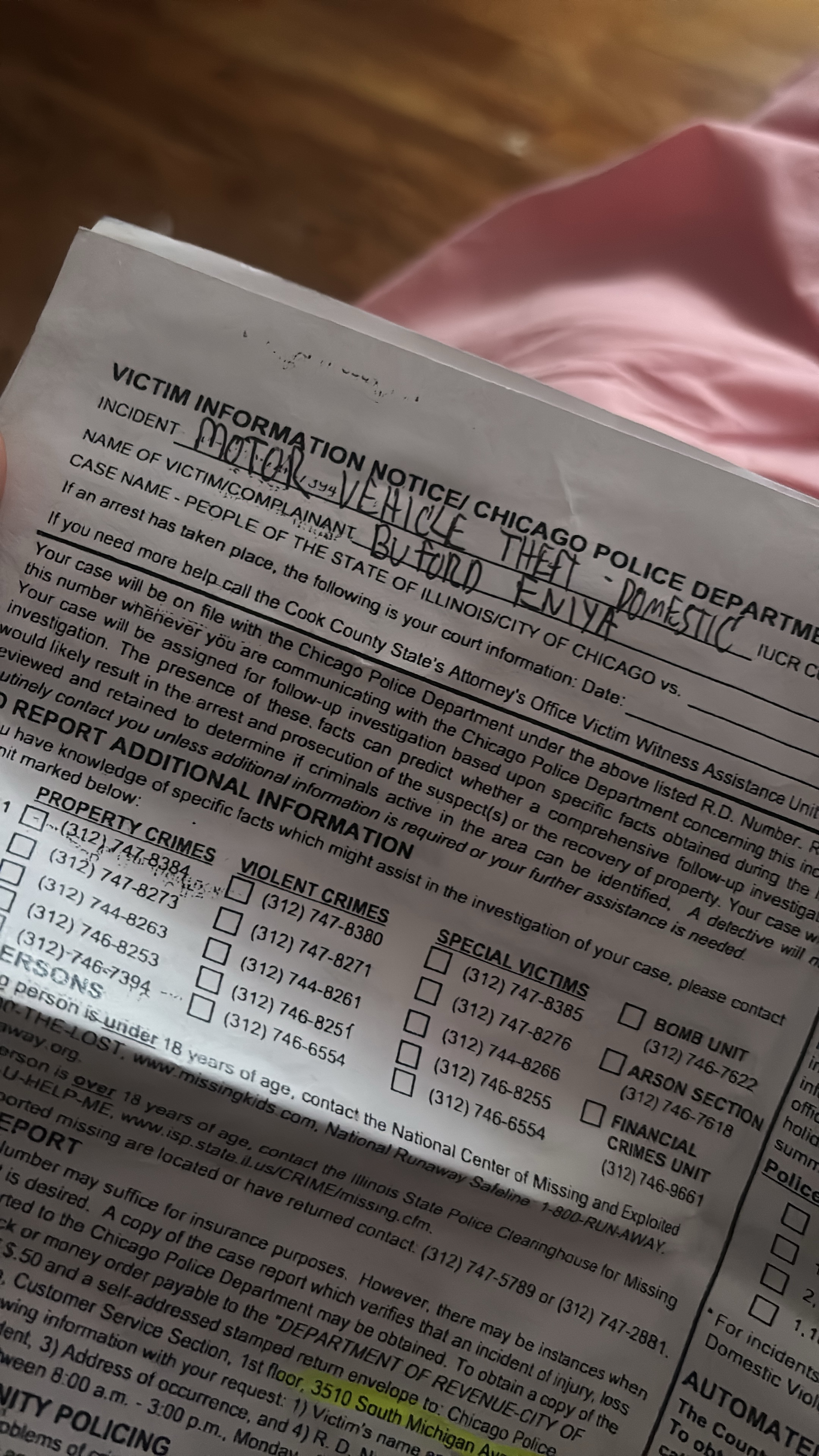 My child’s father took my car without permission and this was the cause of it