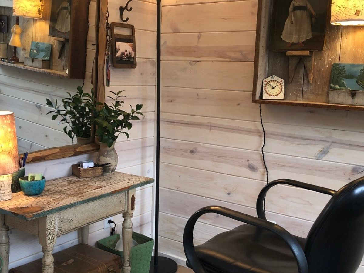 Closing Heavenly Metal gave me the opportunity to put my creative thinking cap on yet again. I came up with a perfect way to continue my haircutting business in a pleasant, calming environment: I converted my garden/tool shed, nestled against a little goldfish pond in my garden, into the prettiest little haircutting shop. I call it my “haircut cottage.” With lots of natural light and located on my quiet Old West Side street, my hair clients adore the change and intimate space I’ve created.