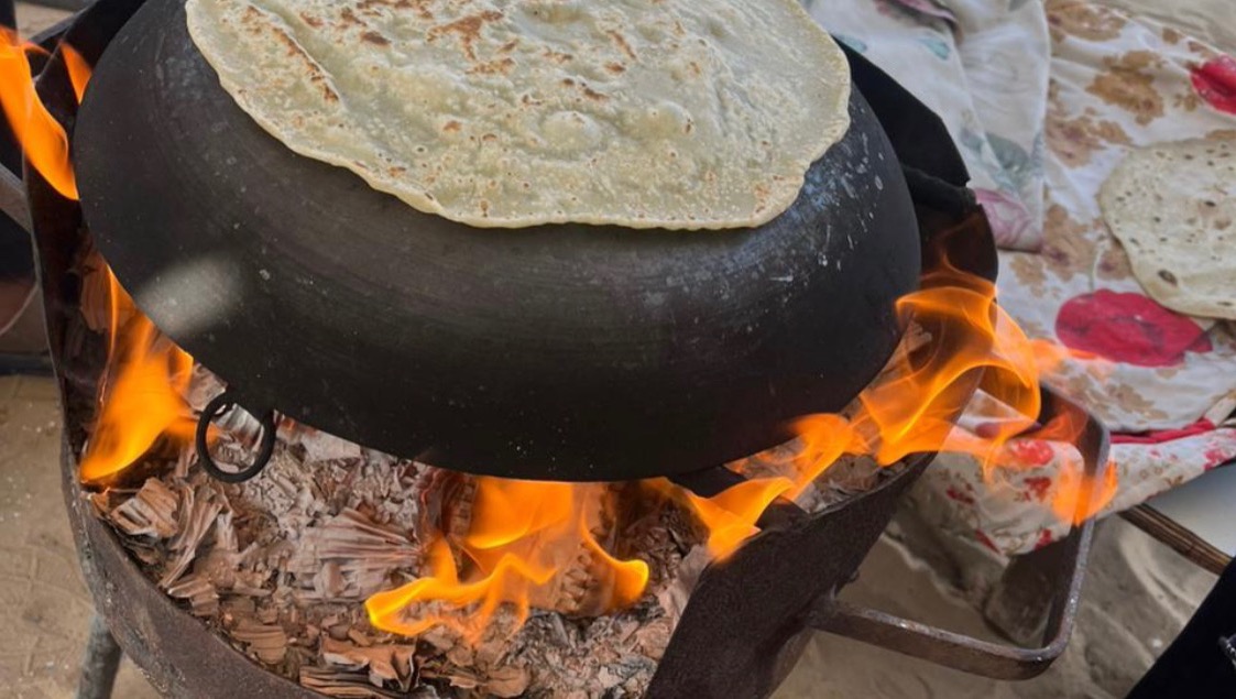 First, we went to a house in Nuseirat camp, where there were about 70 people together, and there were no supplies or food stocks sufficient for us to survive. Despite that, we stayed until the news of the evacuation came and we were displaced to Rafah. Things were worse than before. I used to spend the whole day searching for food, water, and wood to cook food. Our daily obligations, and night often came and I returned without achieving anything due to the lack of food in the markets and the crazy rise in prices.