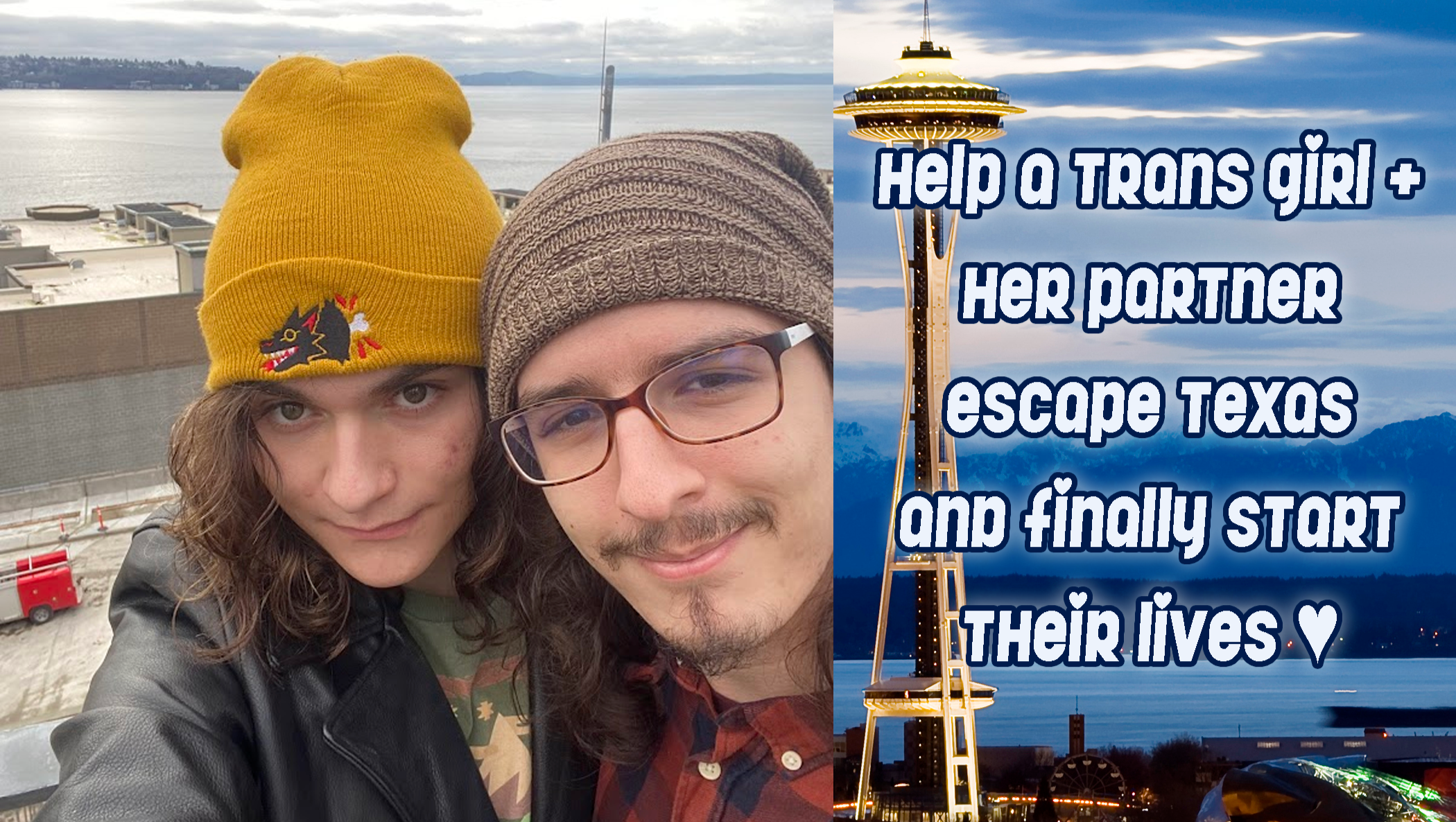 Hi! My name is Salvia Hunden, you may know me as MAILPUP or salv the dog! I'm a 23 year old queer trans girl, multimedia artist, performer, and musician currently living in Denton, Texas, USA. I live with my life partner Gianni, and while we have tried our best to create a safe and happy home, the unfortunate truth is that the political climate of our surroundings has made life unlivable. Every day I go out as my true self, I risk being assaulted or killed by any of the countless people surrounding me who want me gone because of my identity. What is much more pressing and frightening though, is the high likelihood if not prolonged certainty, that my HRT will be made illegal within a year, causing untold harm to me physically and emotionally through forced detransition. I can not live without access to healthcare and my hormones, and it is increasingly starting to feel like living in Texas is a death sentence waiting to happen. I've lived here almost my entire life, moving here when I was 8 due to a change in my family's employment, and it has been 15 years of living in a depressing hot urban sprawl, far separated from my friends, loved ones, and family members, nearly all of whom live up north.